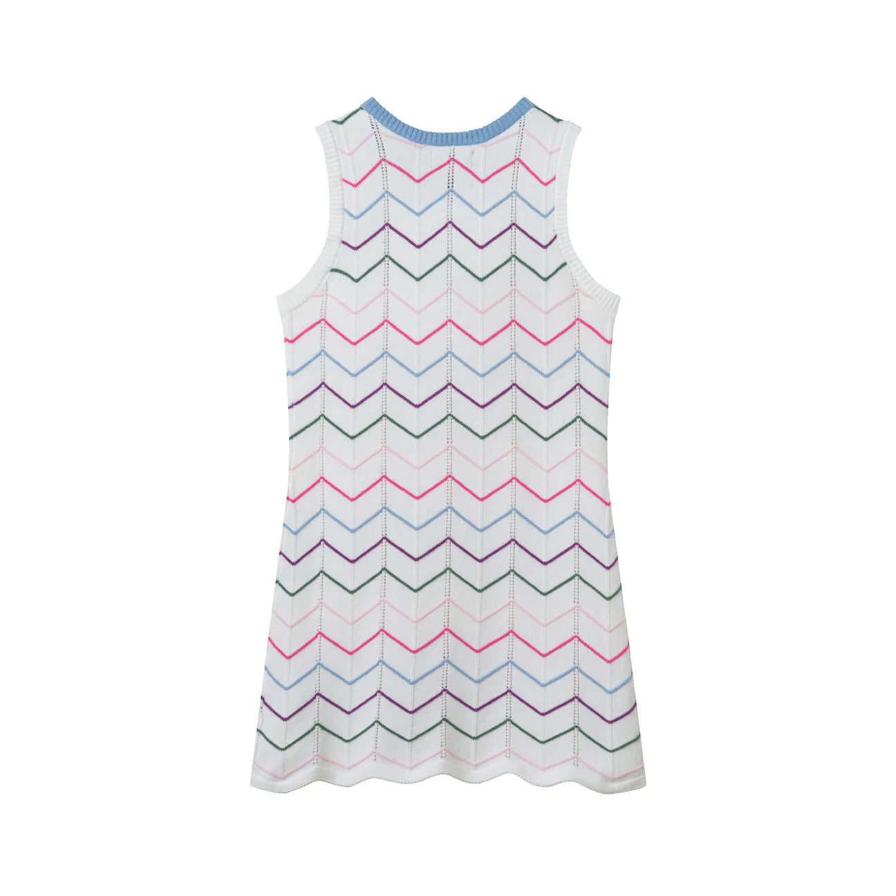 Add a pop of playful elegance to your wardrobe with this chevron-patterned knit dress! Perfect for sunny outings or casual gatherings, it combines comfort and chic style effortlessly.