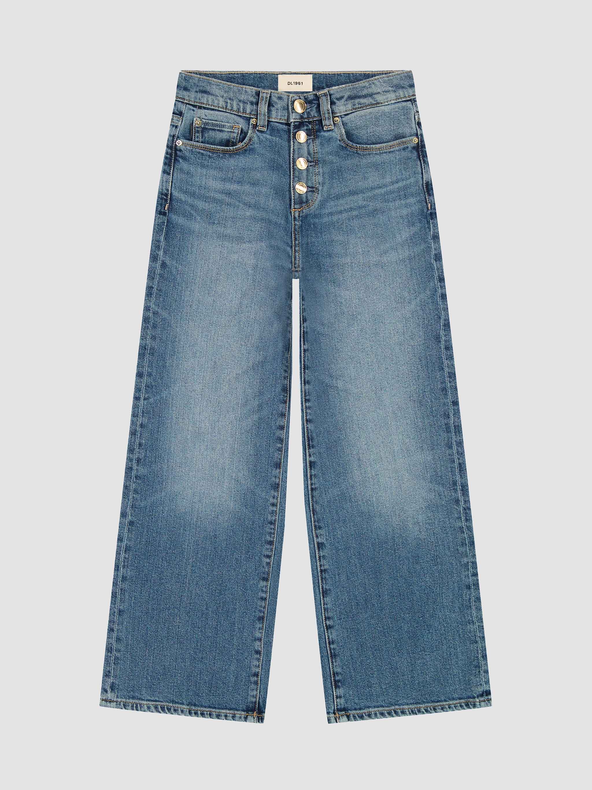 Lakewood is a mid-indigo wash with authentic character. It features exposed faux buttons that cover a hidden zip fly, gold hardware, multi-colored stitching, an ecru back patch and clean hem.