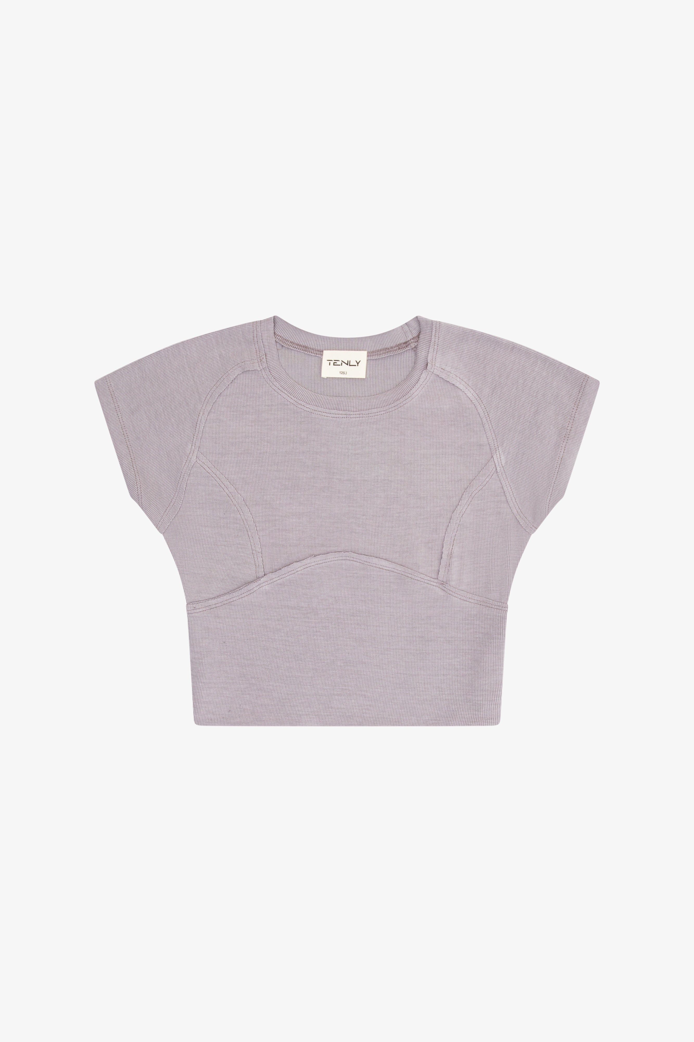 RIB CAP SLEEVE BASEBALL TEE - Cobblestone