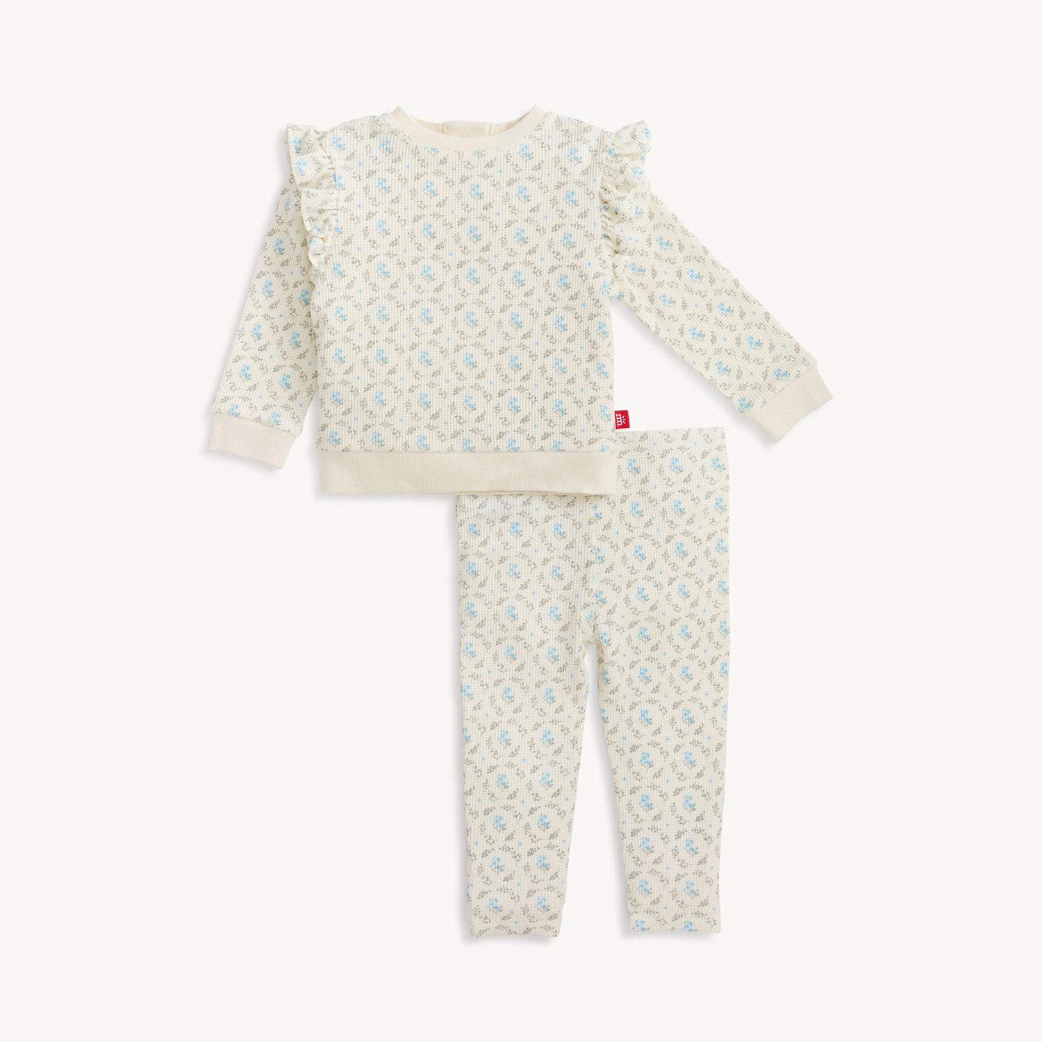 This Top & Legging Set is designed with a magnetic closure on the top that expands the neckline for faster over-the-head dressing, while stretchy bottoms speed up diaper changes. With whimsical flutter sleeves and the cozy texture of waffle modal, it's designed for baby to wear out and about—but it’s just as comfy as our pjs.