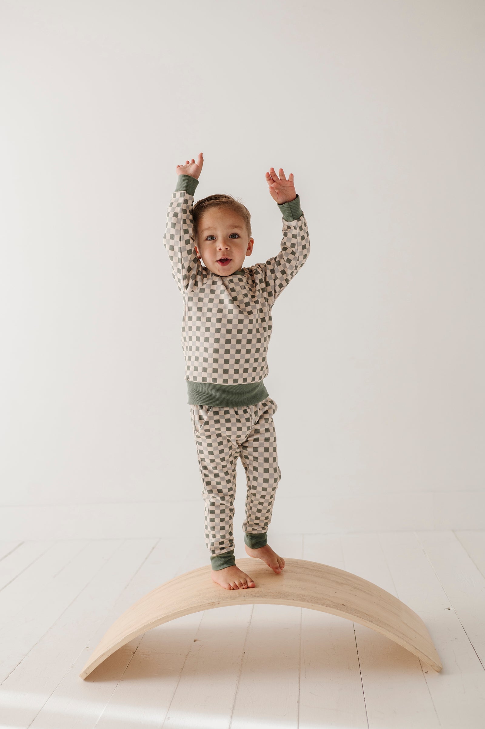 This fleece sweatshirt in a distinctive fern checkered pattern combines warmth and style for cooler days. Crafted from soft, insulating fabric, it offers comfortable wear while maintaining a polished look. Ideal for layering or standalone use, it provides both functionality and a refined aesthetic suitable for various casual settings.