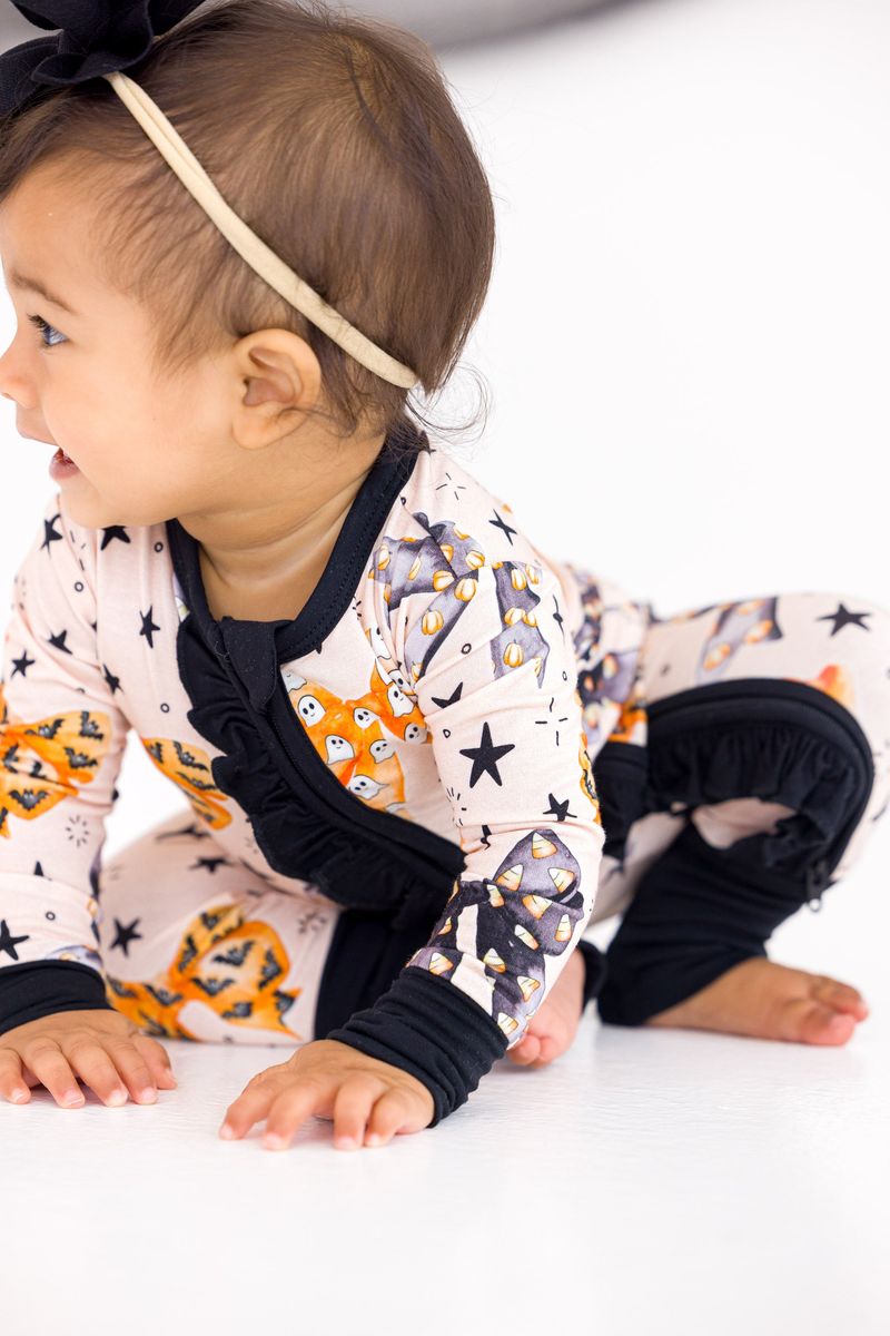 Why choose between a romper and a footie when you can have both in one adorable piece? This versatile romper converts into a footie with fold-over feet cuffs, giving you all the flexibility you need! Made from irresistibly soft bamboo viscose with a hint of spandex, this piece combines cuteness and comfort, and our 2-way zipper makes diaper changes effortless.