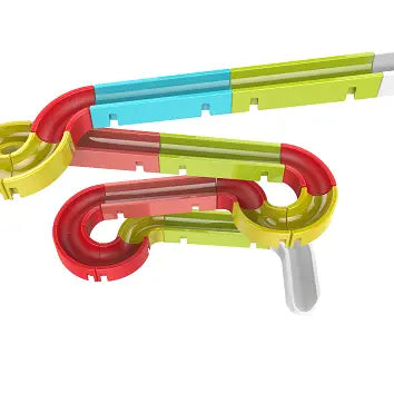 Build a winding, twisty race track with the bright and vibrant pieces and watch the whacky balls race their way down the watery track!