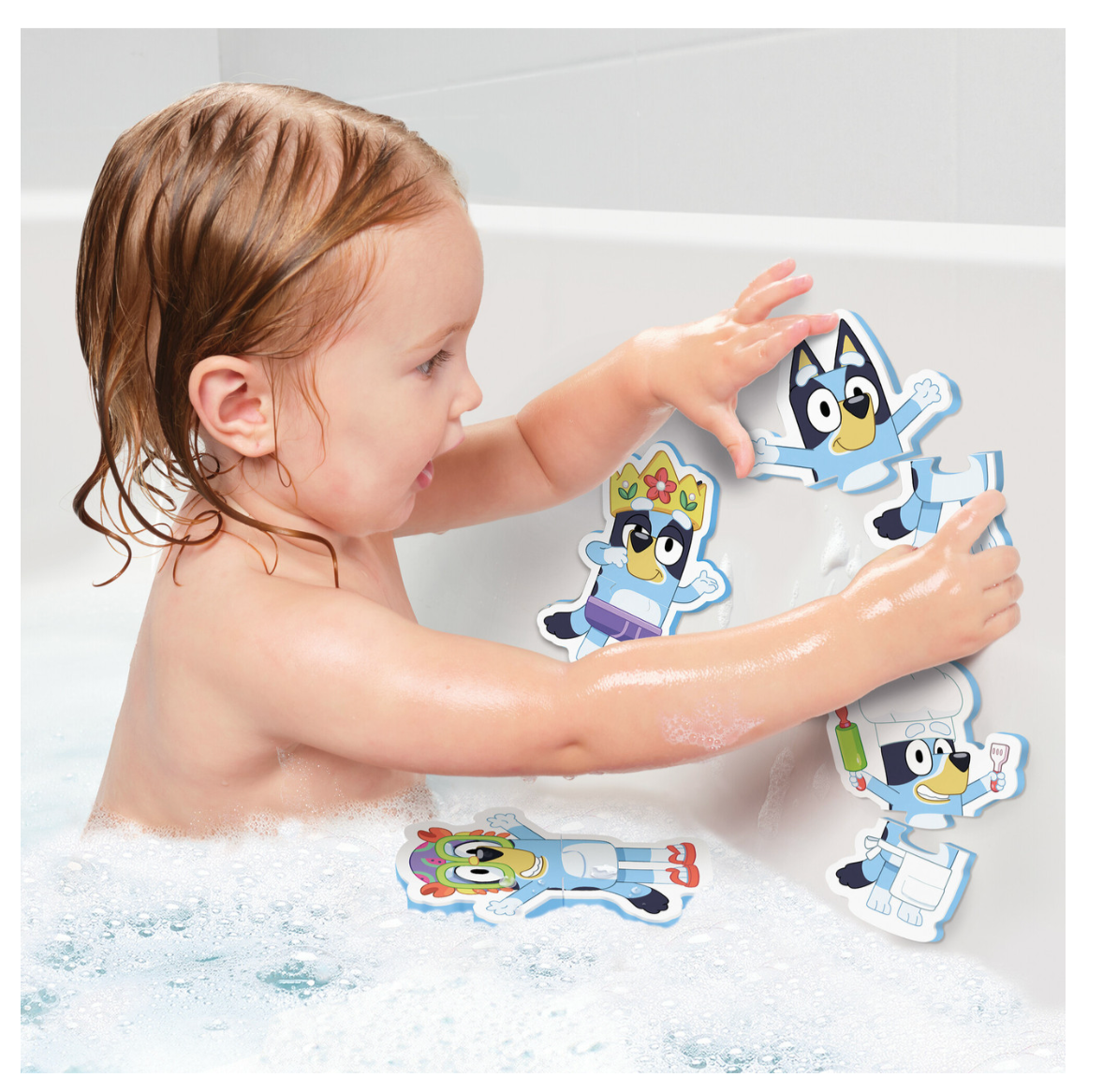 • Bathtime with Bluey: Toddler puzzle features 8 large, soft foam pieces that stick to tile when wet for creative play and bathtime fun