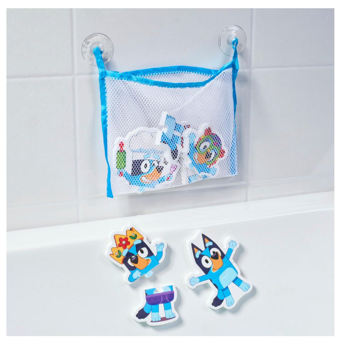 Bath time’s a blast with the Bluey Bath Puzzle! This toddler-friendly puzzle brings four fun Bluey poses to life, each with a different outfit for mix-and-match fun. The large, soft foam pieces easily stick to tiles when wet, turning bath time into a creative adventure. With eight easy-to-hold pieces to use, little hands will develop fine motor skills while building confidence in the water. When the fun's done, store the puzzle in the handy mesh bag that comes with suction cups that let you keep everything organized and ready for the next splash. A great water toy for Bluey fans aged 18 months and up, this playful set makes every bath an exciting, imaginative journey!