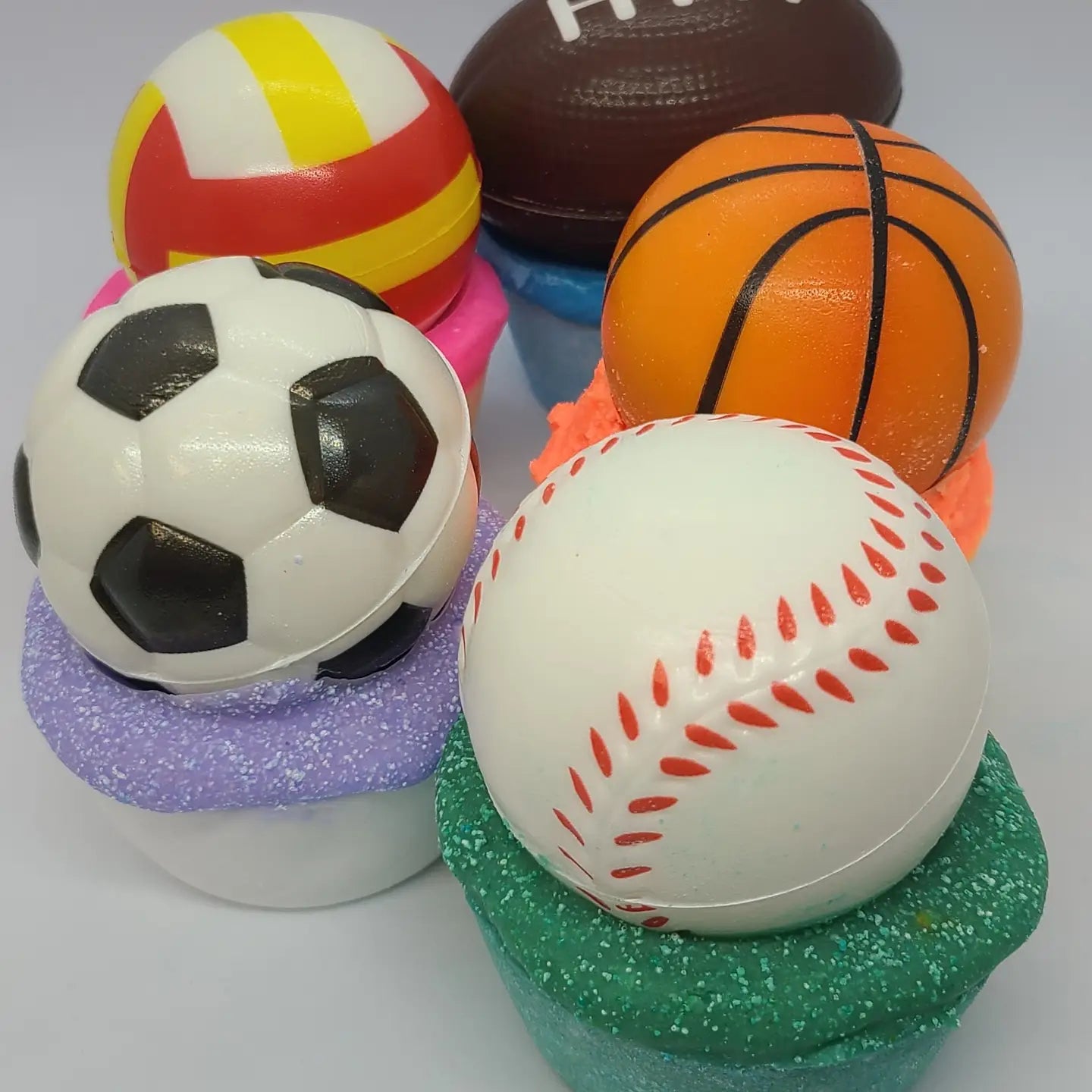 For a deliciously soothing, moisturizing bubble bath, simply place Sassy Bubbles Sport Ball Bath Bomb in under warm bath water for enormous bubbles. The squishy balls will spin swim around the bath water, while the bath bomb will fizz and bubble. Wonderful oils will nourish your skin. Amazing aromatherapy scent will relax your soul. Fun gift for active kids. Will include a variety of scents and sport balls.