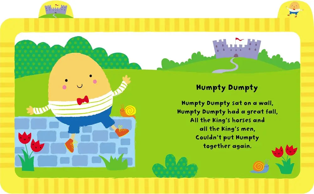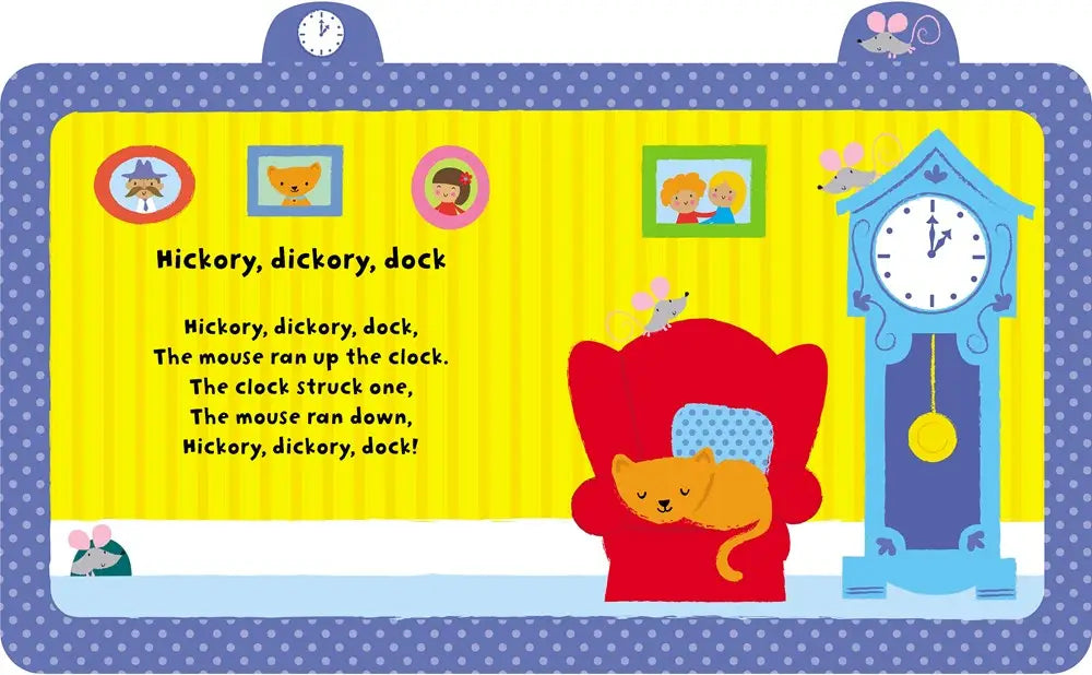 Little hands will love pressing the buttons on this bright and colorful board book to hear the tunes of their favorite nursery rhymes. Includes five popular nursery rhymes: "Hickory, Dickory, Dock", "Humpty Dumpty", "Twinkle, Twinkle Little Star", "Baa Baa Black Sheep" and "Hey Diddle Diddle". With vibrant, high-contrast illustrations specially designed to appeal to young children. A lovely gift for babies and toddlers, sure to be looked at again and again. Music arranged and produced by Anthony Marks.