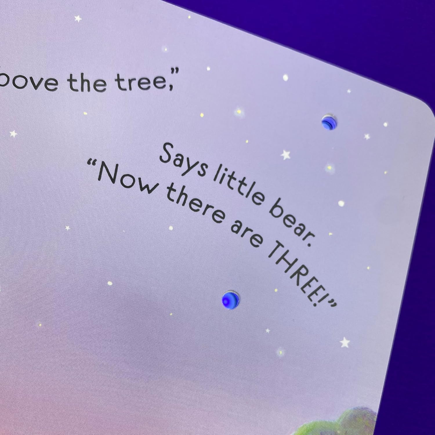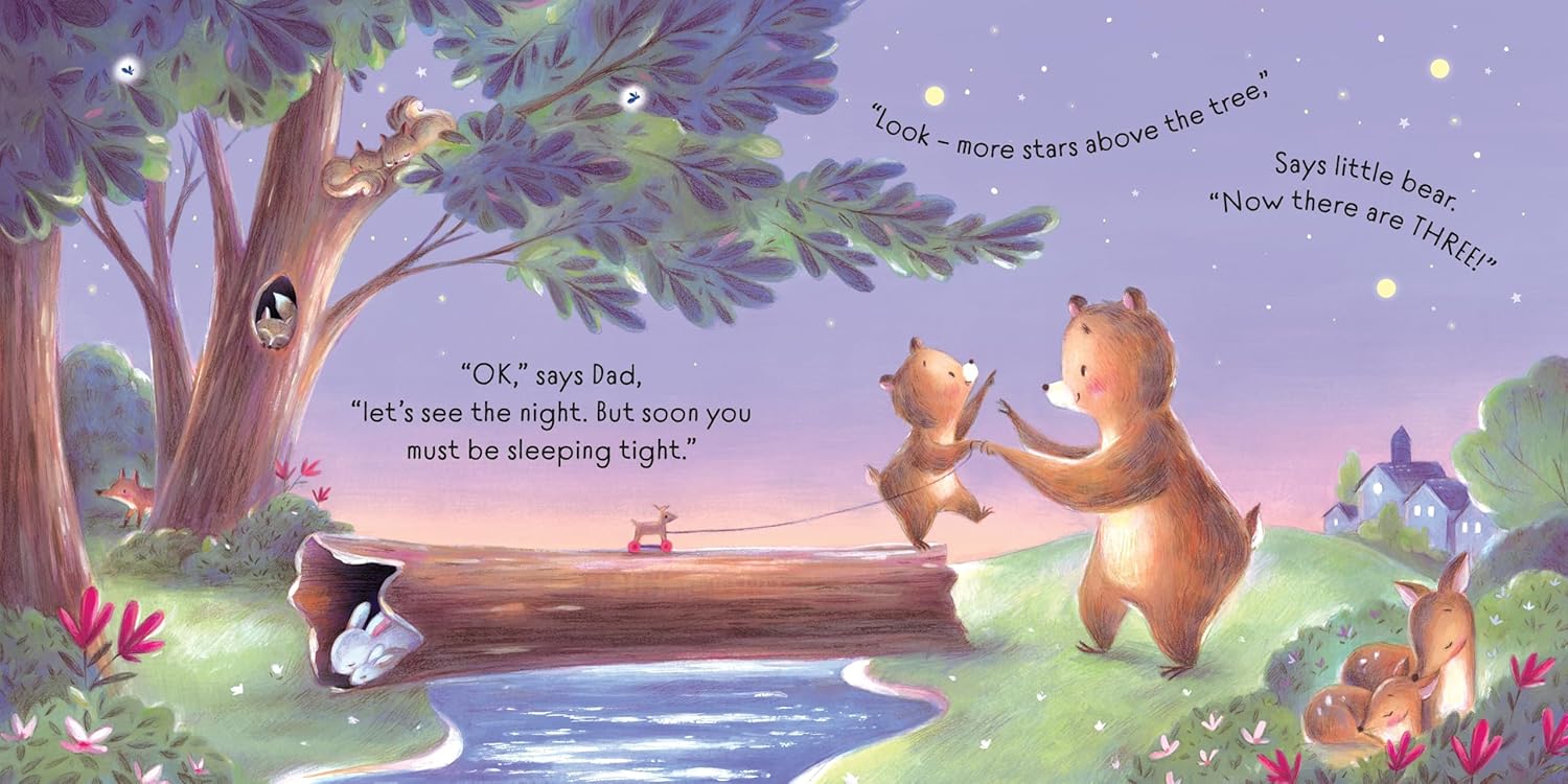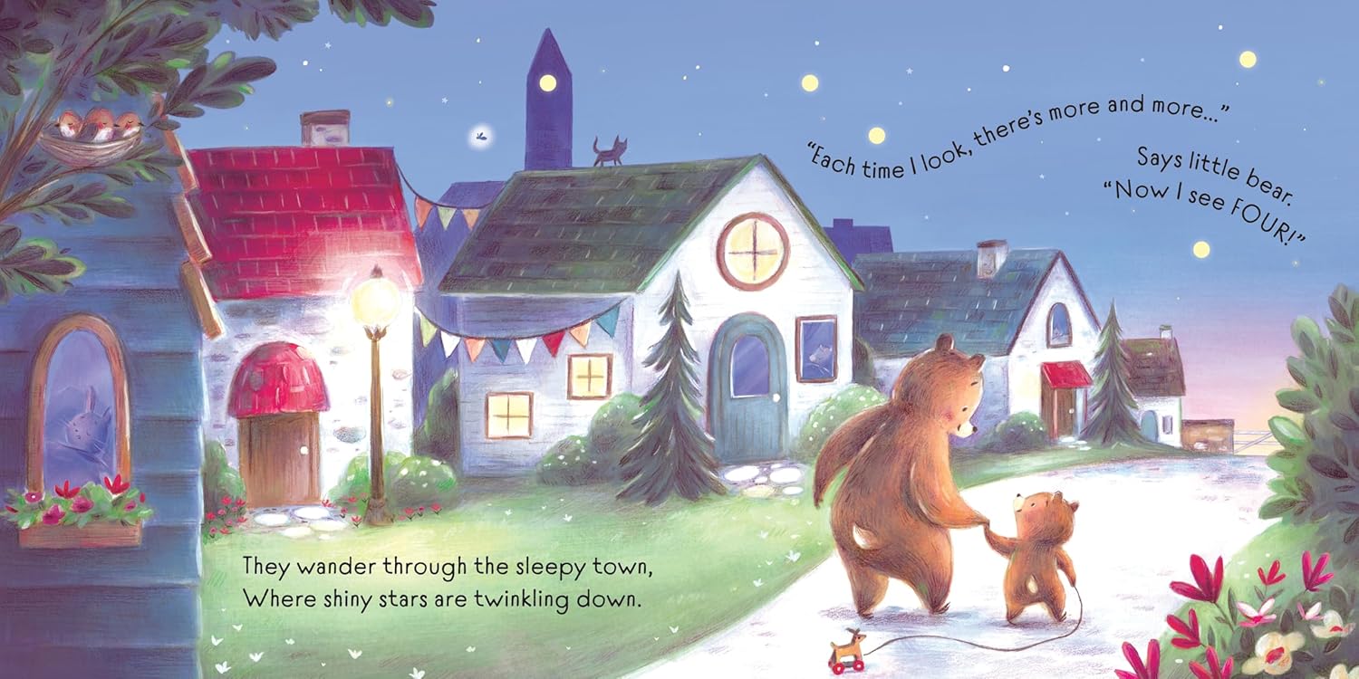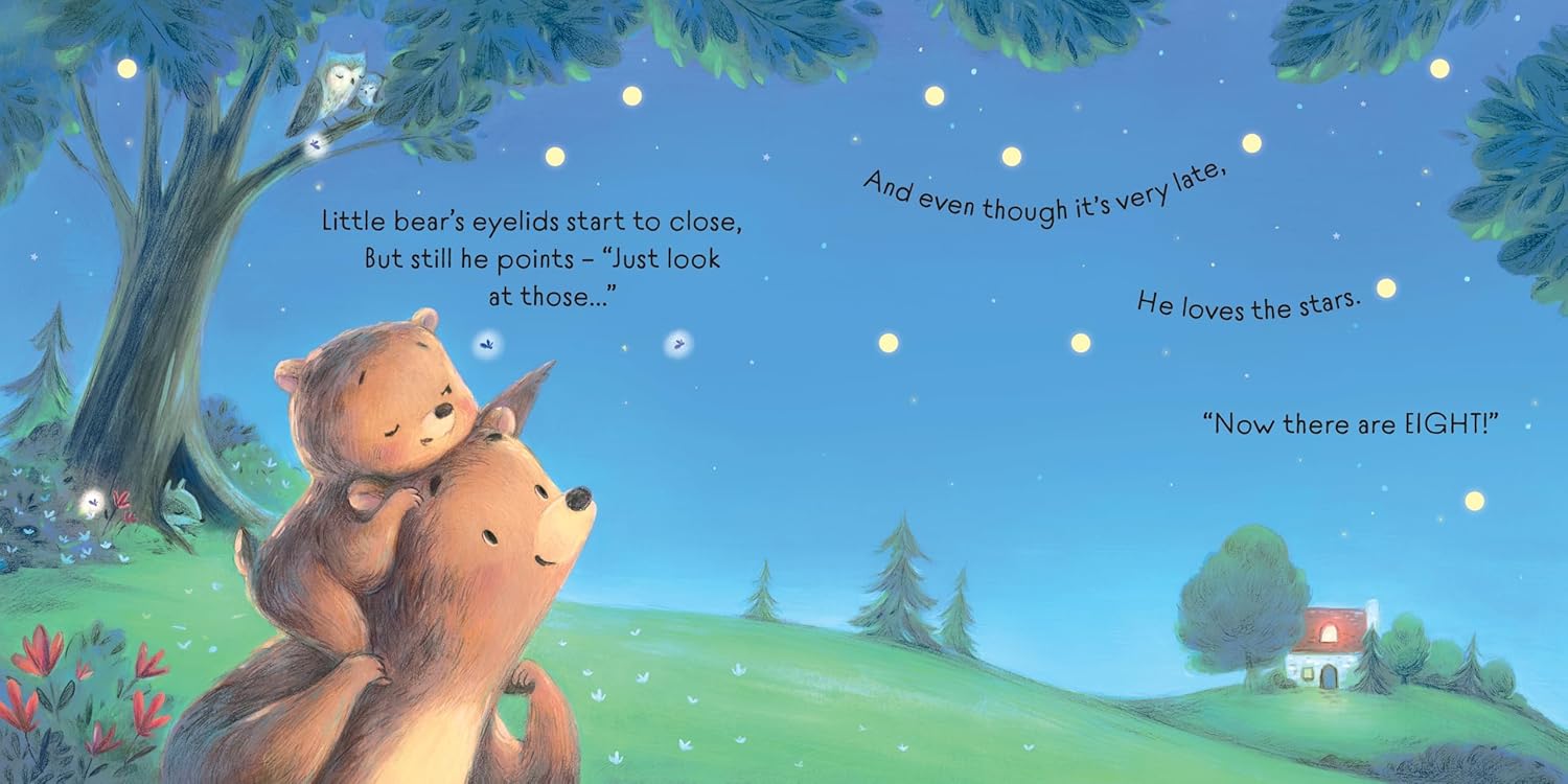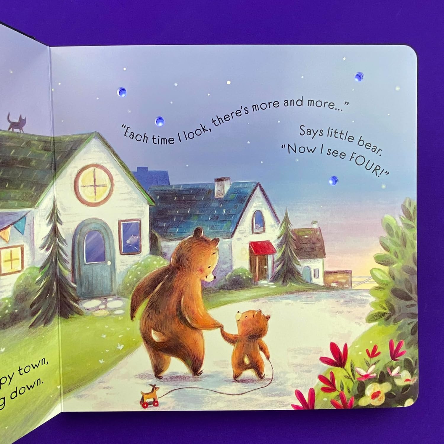 It's bedtime for little bear... but all those twinkly stars in the night sky look ever so exciting! Each time you turn a page, you'll see more and more stars as the sky is lit up by real lights.