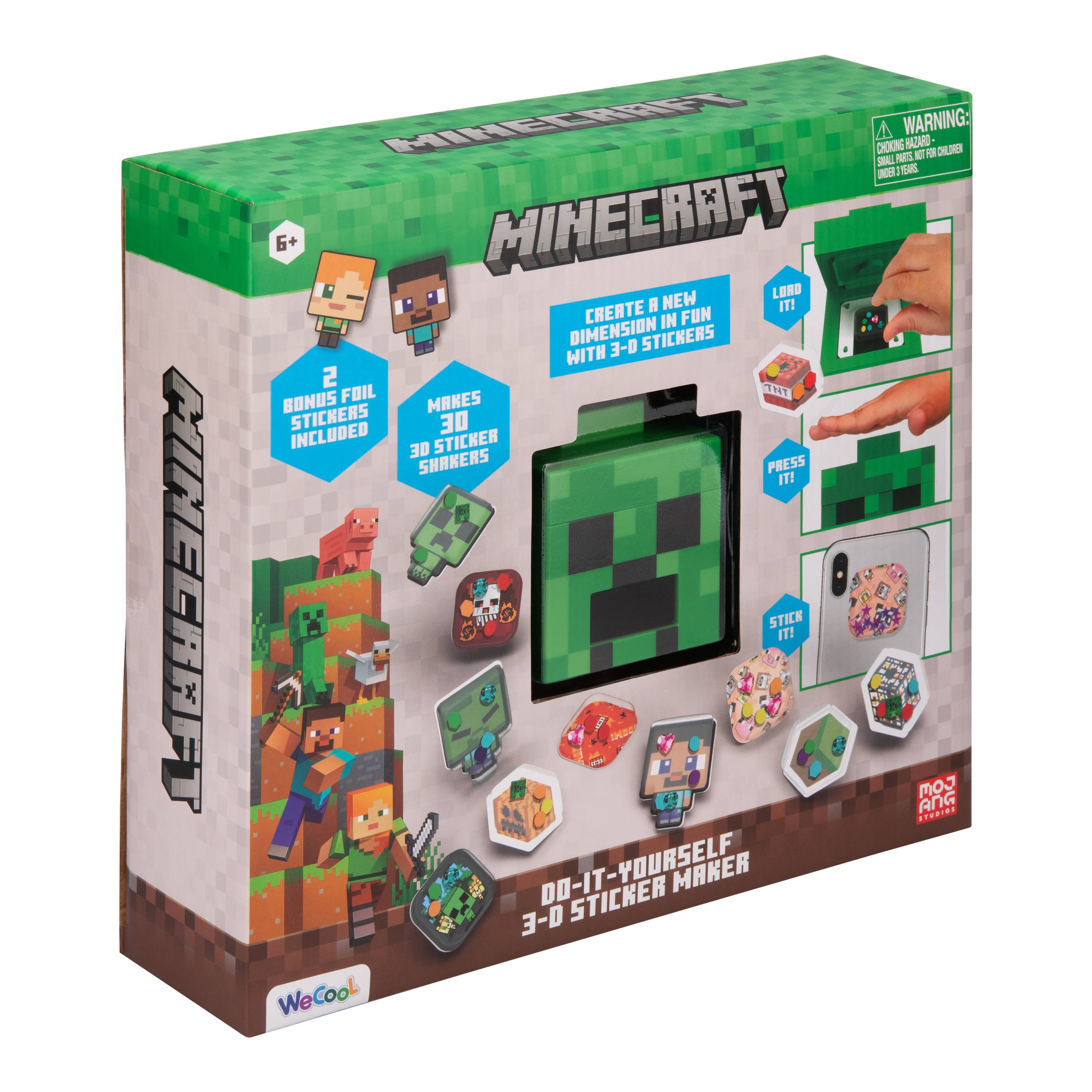 Get ready to take your stickers to the next level with the Minecraft Do-it-Yourself 3D Sticker Maker. Load it, press it, and stick it to create awesome, blocky Minecraft stickers that stand out wherever you stick them. The all-inclusive craft kit and Creeper shaped sticker maker comes with everything you need for hours of fun creating up to 30 3D stickers (including two bonus foil stickers). With a variety of fun backgrounds and an exciting selection of gems and sprinkles, the possibilities are endless! The Minecraft Sticker Maker is perfect for crafting with friends.