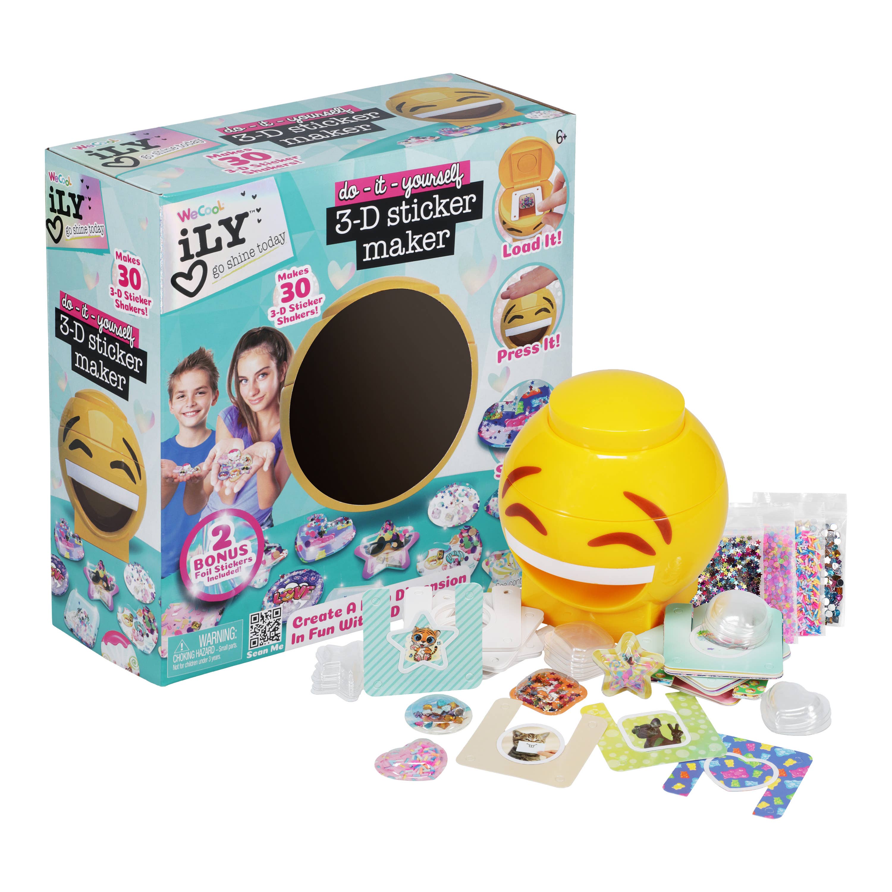 Load it, press it, and stick it to create vibrant, personalized stickers that pop with personality. The all-inclusive craft kit and sticker maker comes with everything you need for hours of fun to create up to 30 3D stickers (including two bonus foil stickers). With a variety of fun backgrounds and an exciting mix of sprinkles, glitter and gems, the possibilities are endless!