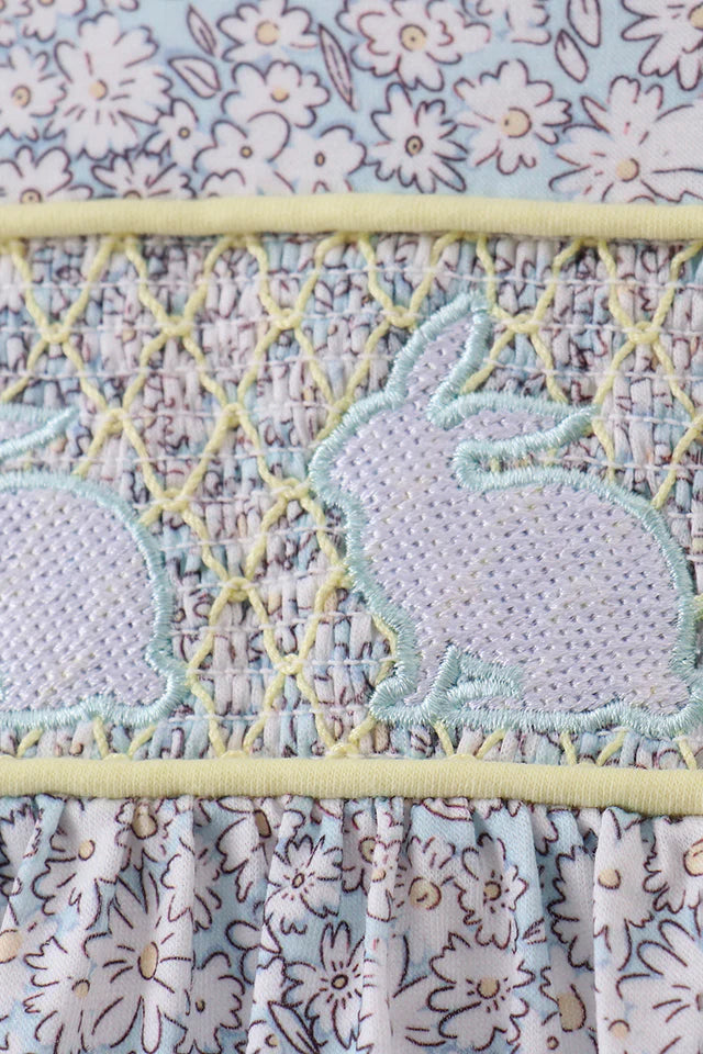 Hop into springtime style with this adorable floral bunny smocked dress! Featuring a charming bunny design paired with delicate floral prints, this dress combines whimsy with comfort. The smocked bodice provides a perfect fit while allowing easy movement for active play. Soft, breathable fabric keeps little ones cool and cozy all day long. Perfect for playdates, family gatherings, or everyday adventures—this dress brings joy and personality to any wardrobe!