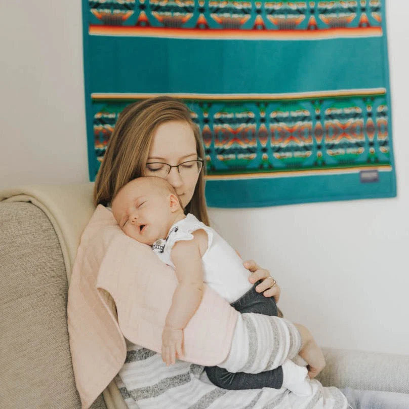 There's no use crying over spilled milk. With 4 absorbent layers of cotton muslin and an innovative shape, our burp cloth keeps you clean and dry while baby's snuggled tight.