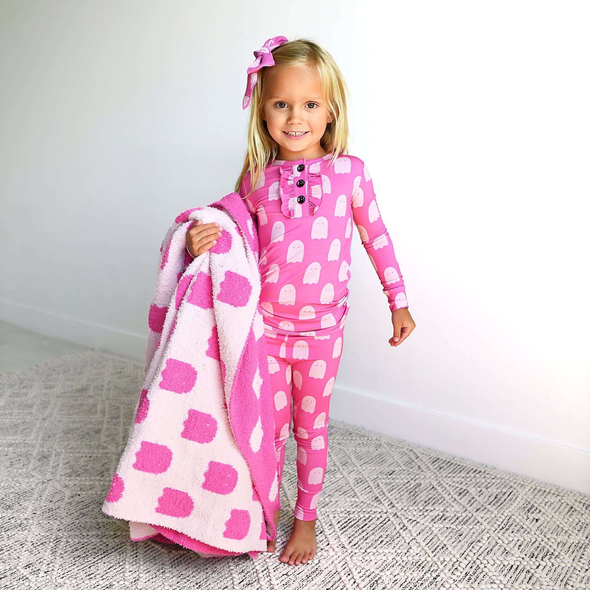 Draven Pink Ghost RUFFLE TWO PIECE Bamboo Halloween Lounge Set: 8