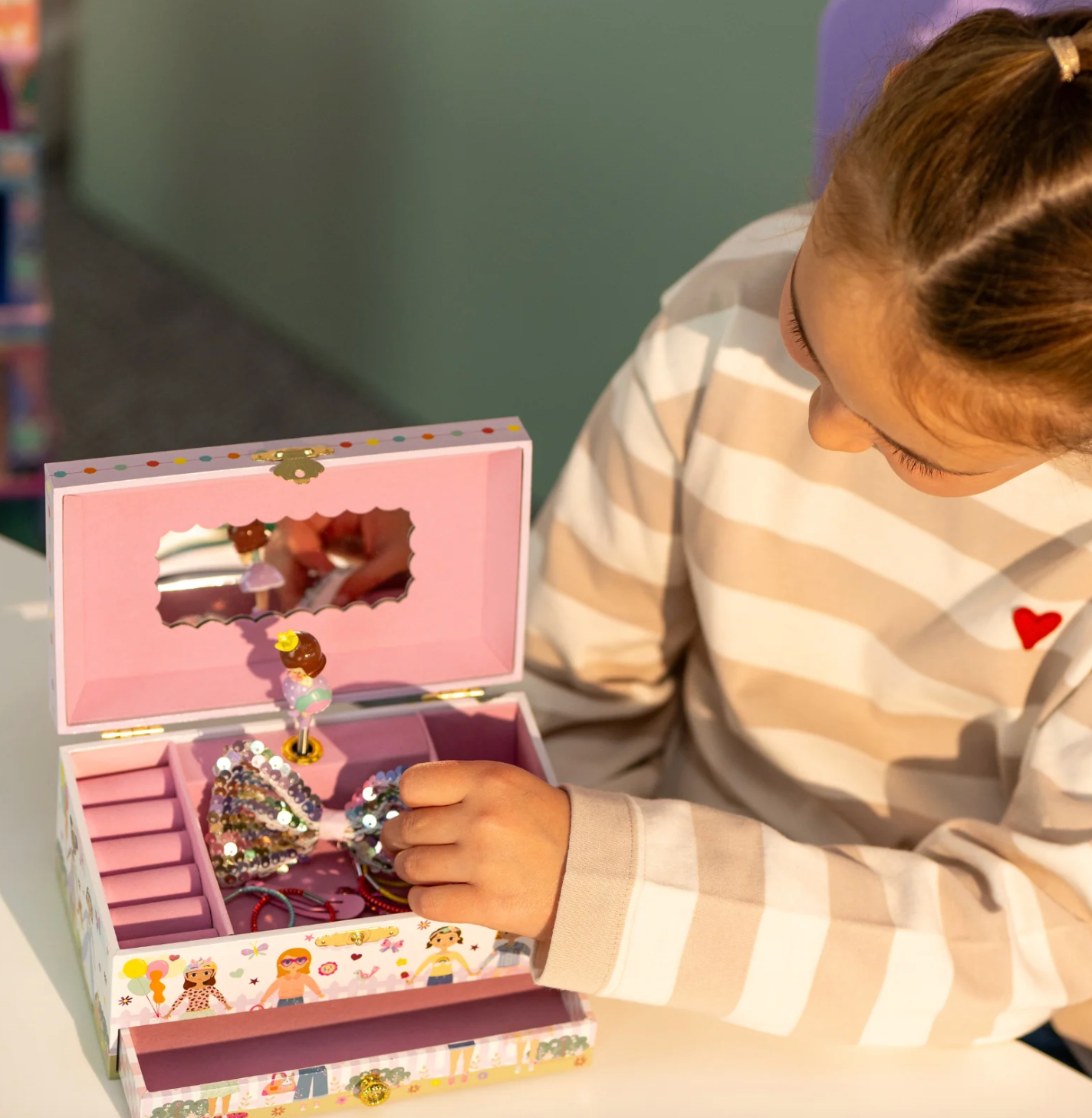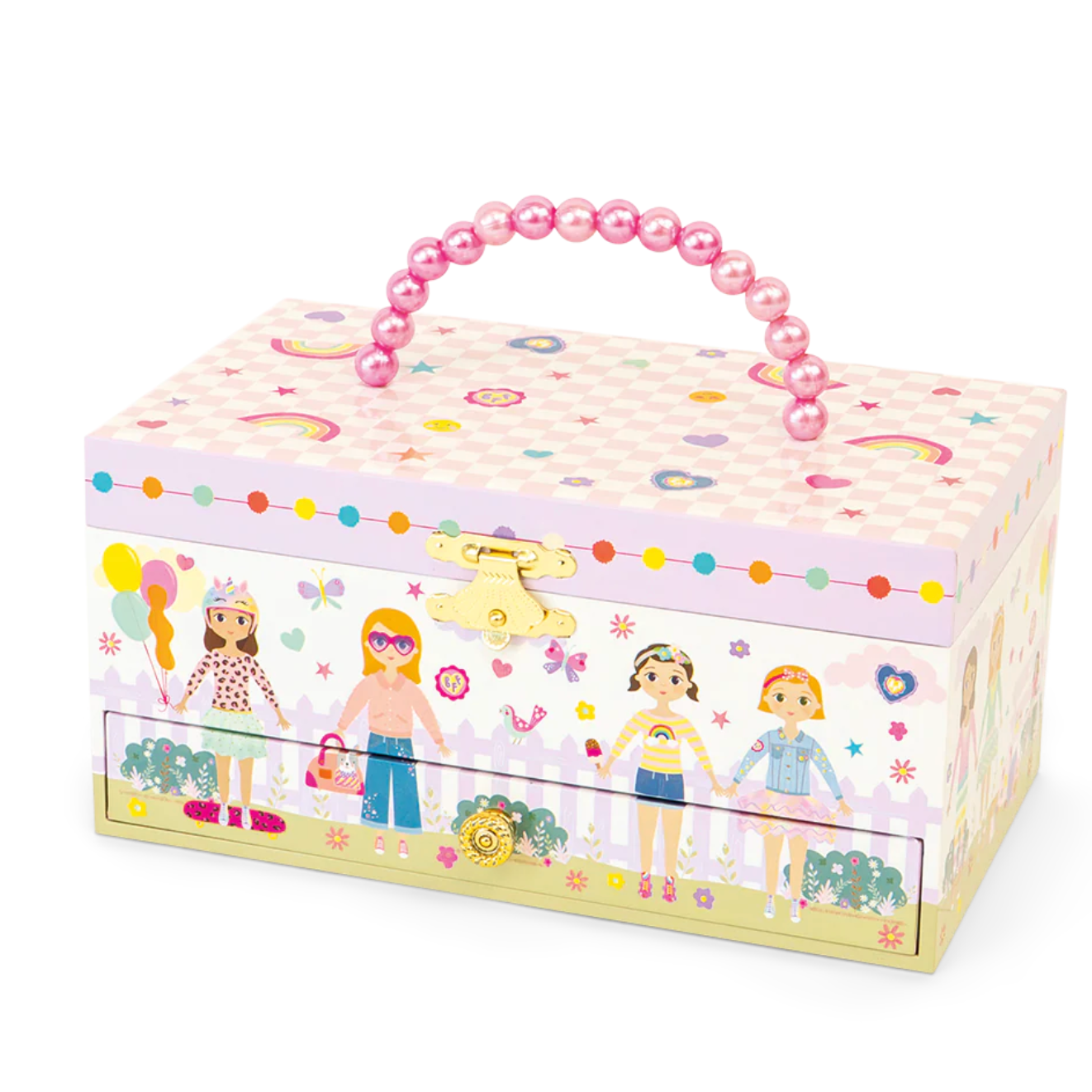 super cute Best Friends Musical Jewellery Box is the perfect accessory for your accessories! With its pretty pearl carry handle, you'll be able to keep your treasures nice and safe whilst you're out and about, playing with friends. With gorgeous shiny foil details and our lovely best friends illustration, what's not to love? Twist the winder at the back to hear 'you've got a friend in me' play whilst the princess inside twirls around!