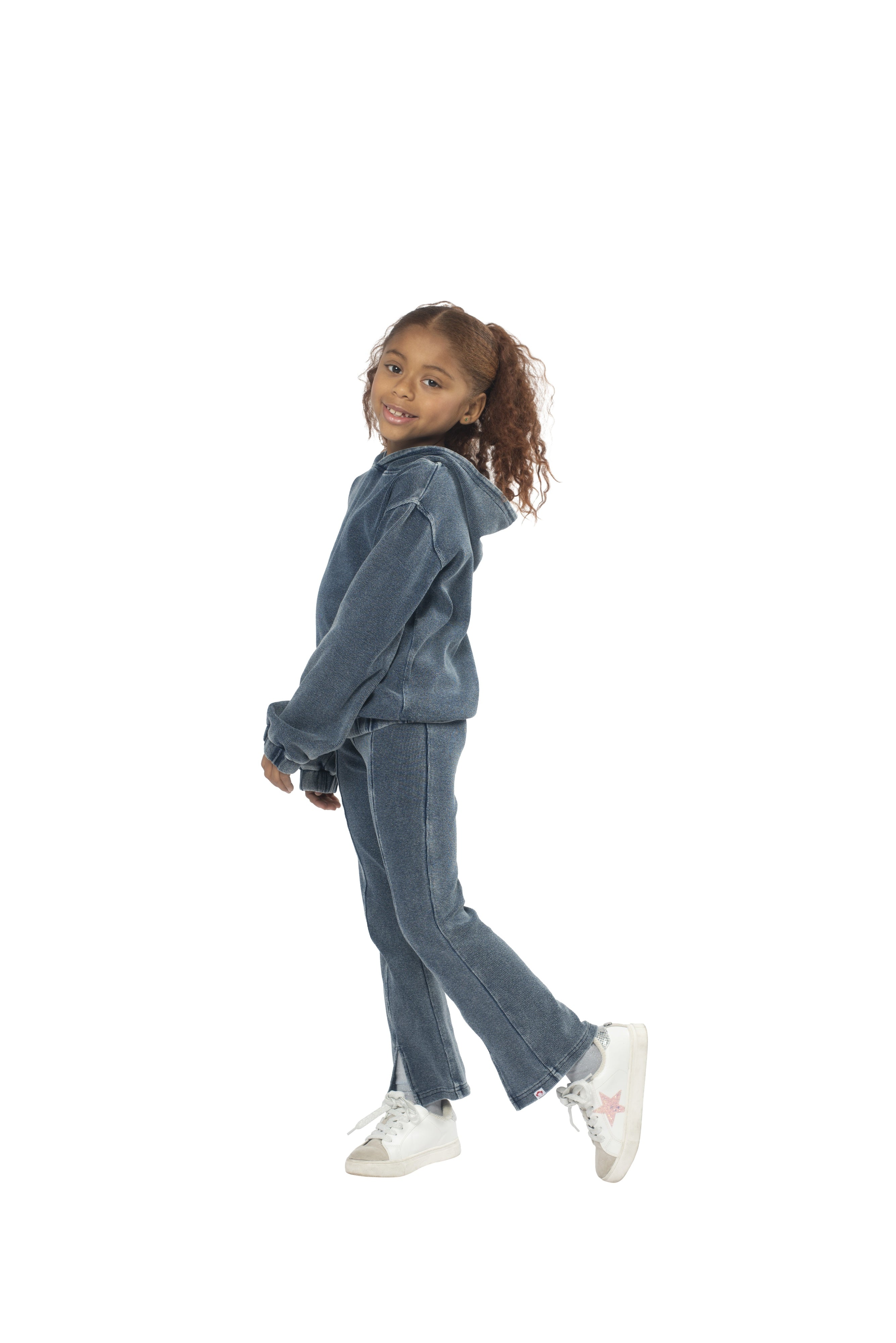 The Flare Slit Legging in Dusk Blue is a stylish twist on everyday comfort! Crafted from denim-inspired fabric, these leggings offer a cool, modern look with a fun flare at the ankle and a bold stripe for added flair. Perfect for active kids, they?re as comfy as they are cute, with just the right amount of stretch. Pair them with the matching Pullover Hoodie in Dusk Blue for a coordinated, effortless outfit that?s ready for playdates, school days, and weekend adventures. Parents will love the durability and versatility, while kids will enjoy the trendy style and cozy feel!