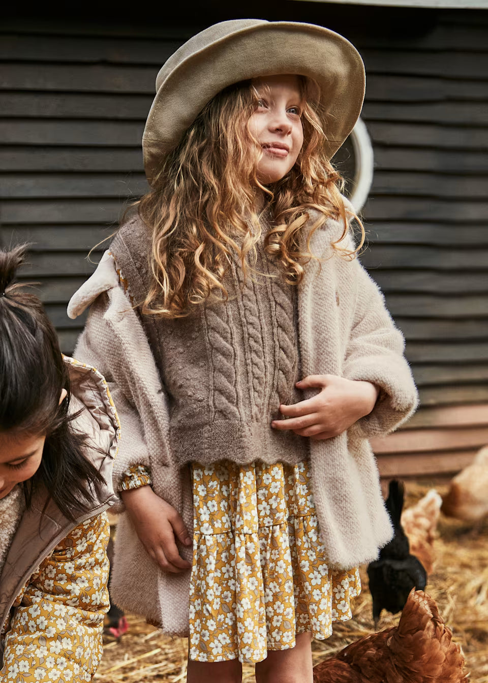 This girls' knit vest combines comfort and style with its soft, recycled polyester fabric and round neckline. Designed with delicate side bows, it adds a charming detail while ensuring a gentle feel against the skin. Ideal for layering, this vest offers both eco-conscious materials and expert craftsmanship for everyday wear.