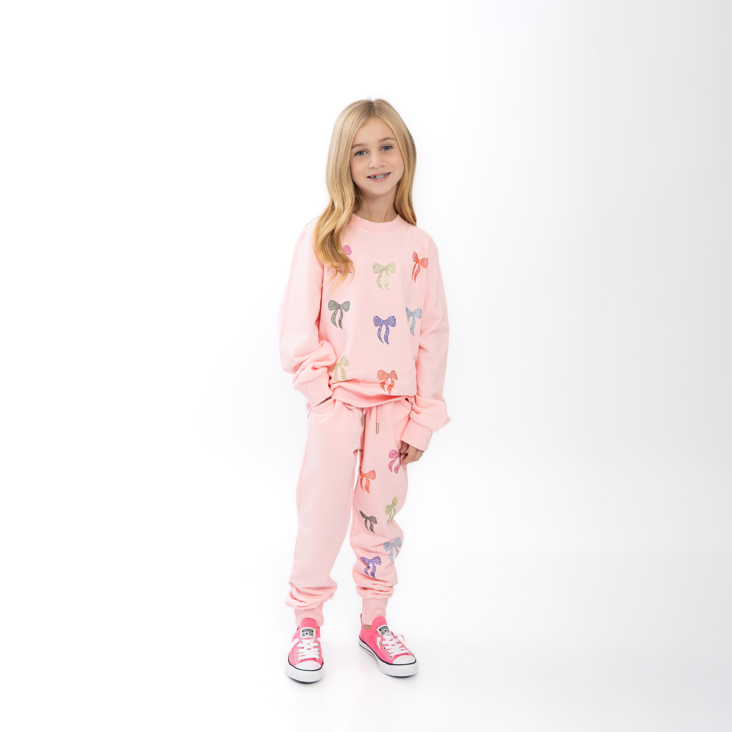 SEQUIN BOWS SET- SWEATSHIRT & PULL ON DS JOGGER WITH POCKETS