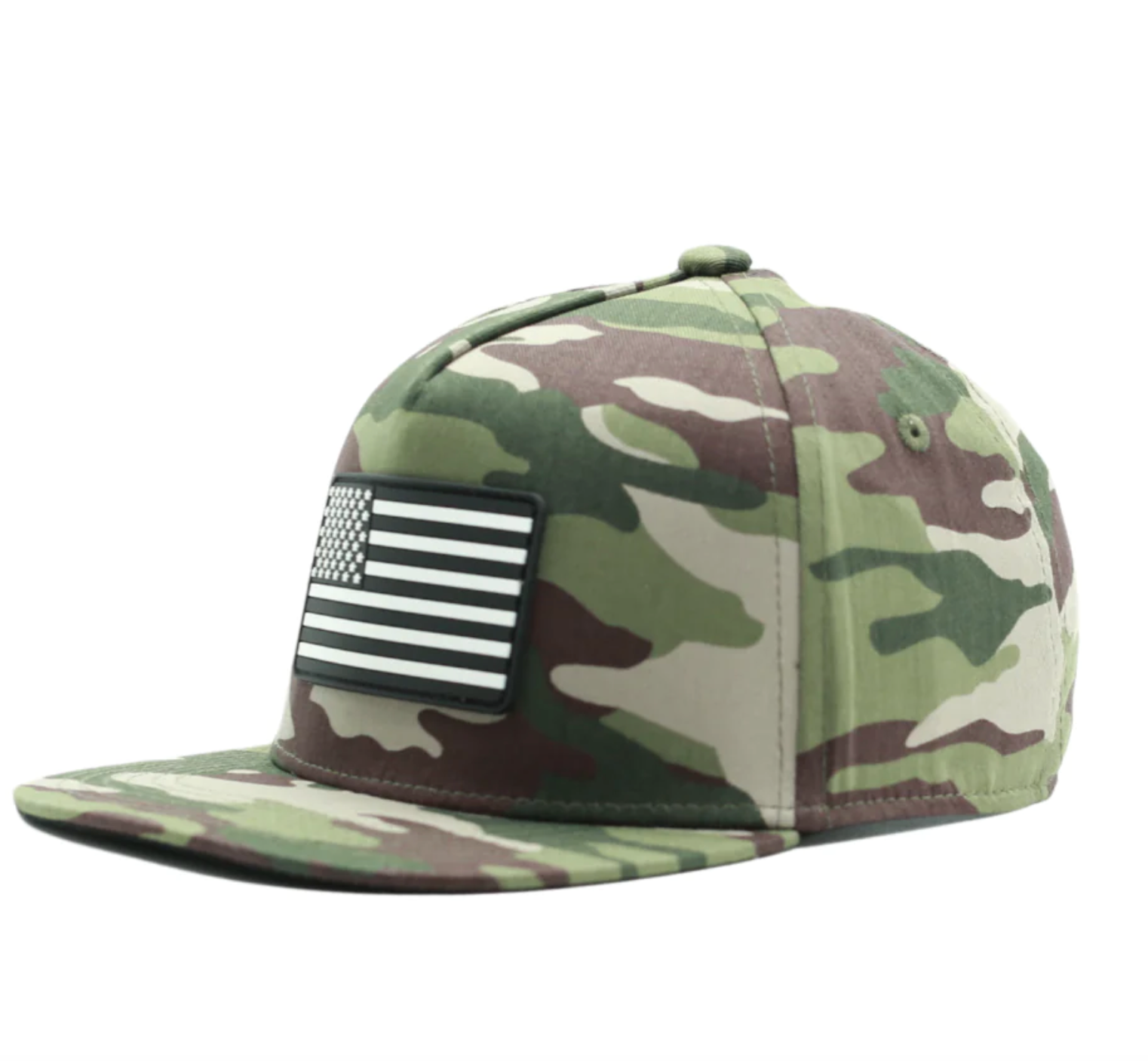 This Camo Trucker Hat is perfect for the little one in your life. This hat features a classic trucker design adorned with the stars and stripes of the American flag. Show off your stars and stripes with this hat!