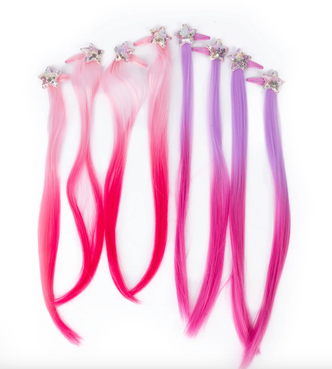 Each extension is finished with a sparkly sequin star hair clip at the top, adding extra shine and glamour. Whether you're getting ready for a special occasion or just want to spice up your everyday look, these clip-in extensions are an easy way to bring some Rodeo Drive-inspired style to your hair!