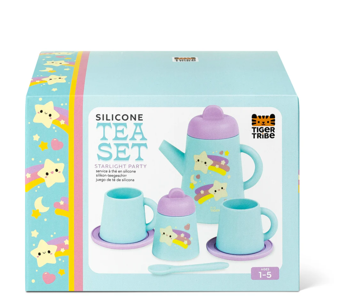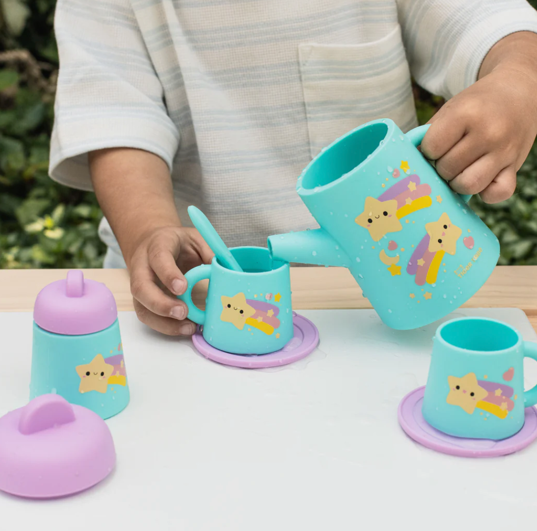 Tea parties just got sweeter with this gorgeous Starlight Party Silicone Tea Set. This versatile, classic tea set is made of kid-friendly, food-grade silicone that’s perfect for playtime. Great for pretend picnics, tea parties, messy sensory play in the outdoor mud kitchen or for creating bubble-chinos in the tub at bath time.