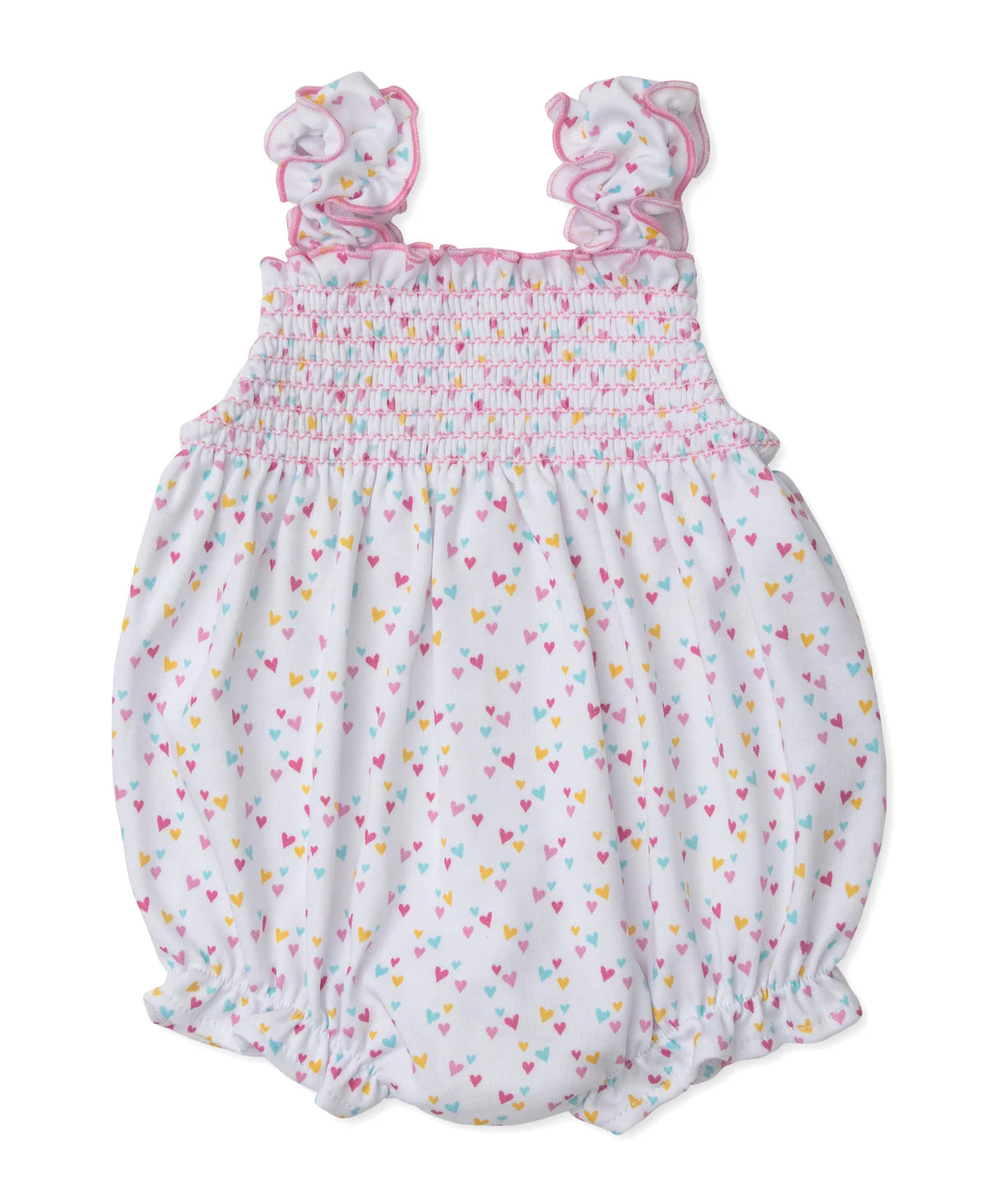 Perfect for spring or summer, our beautiful bubble features our allover carousel magic hearts print with smocked detailing. Made from the softest Pima cotton for ultimate comfort for your baby girl.
