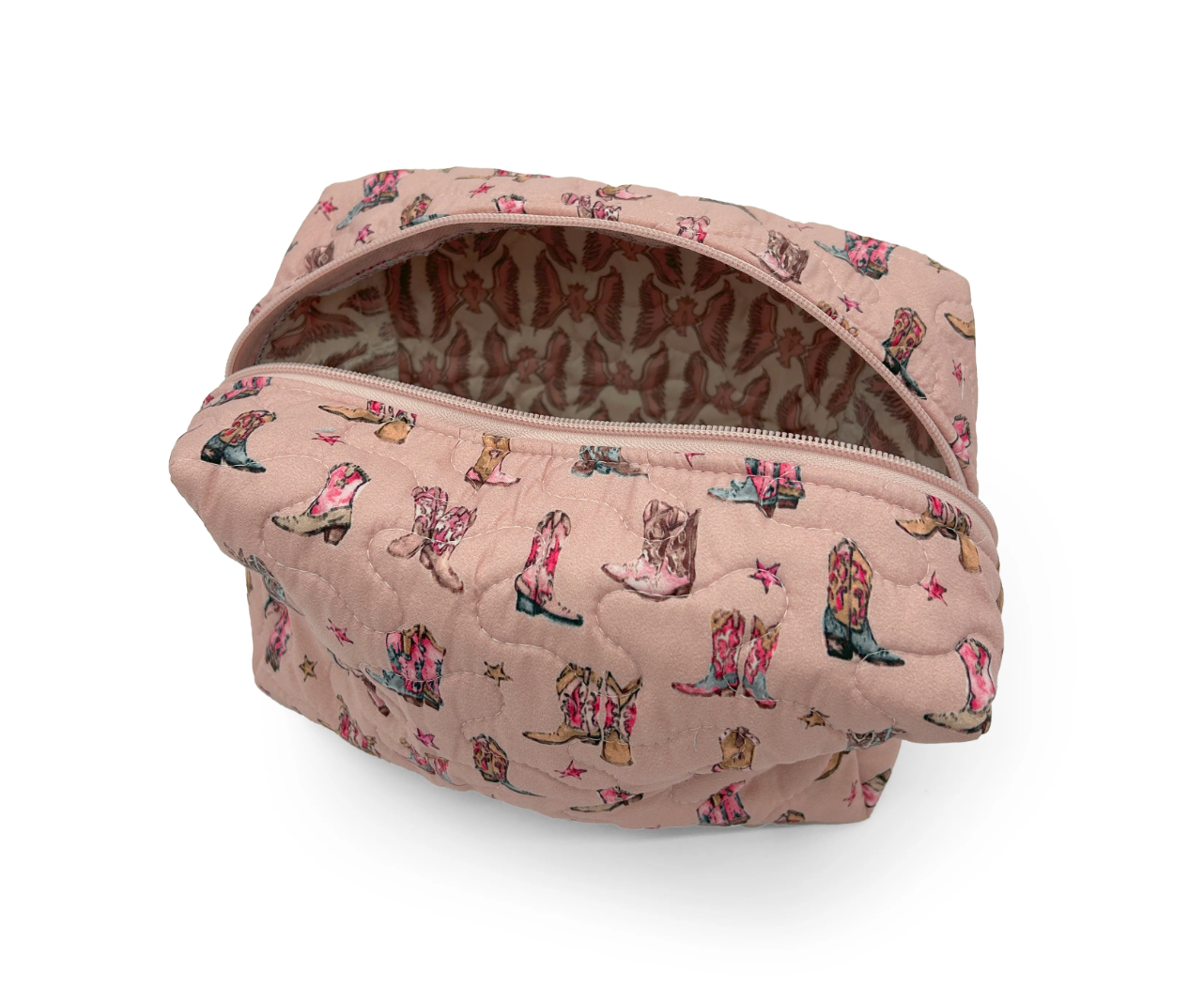 The Thunderbird Boots Rose Quilted Bag combines elegant design with practical functionality. Crafted with a soft quilted exterior in a delicate rose hue, this makeup bag offers ample space to organize your cosmetics and essentials securely. Its durable construction ensures long-lasting use, while the compact size makes it ideal for travel or daily use. Perfect for those who appreciate both style and convenience in their beauty accessories.