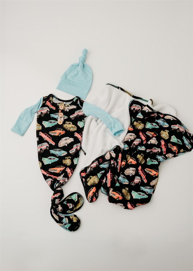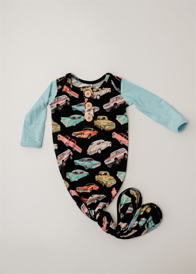 Knot Gown is made from ultra-soft, custom-printed viscose from bamboo fabric that’s breathable, stretchy. Perfect for all day, snuggles and showing off your stylish little one!