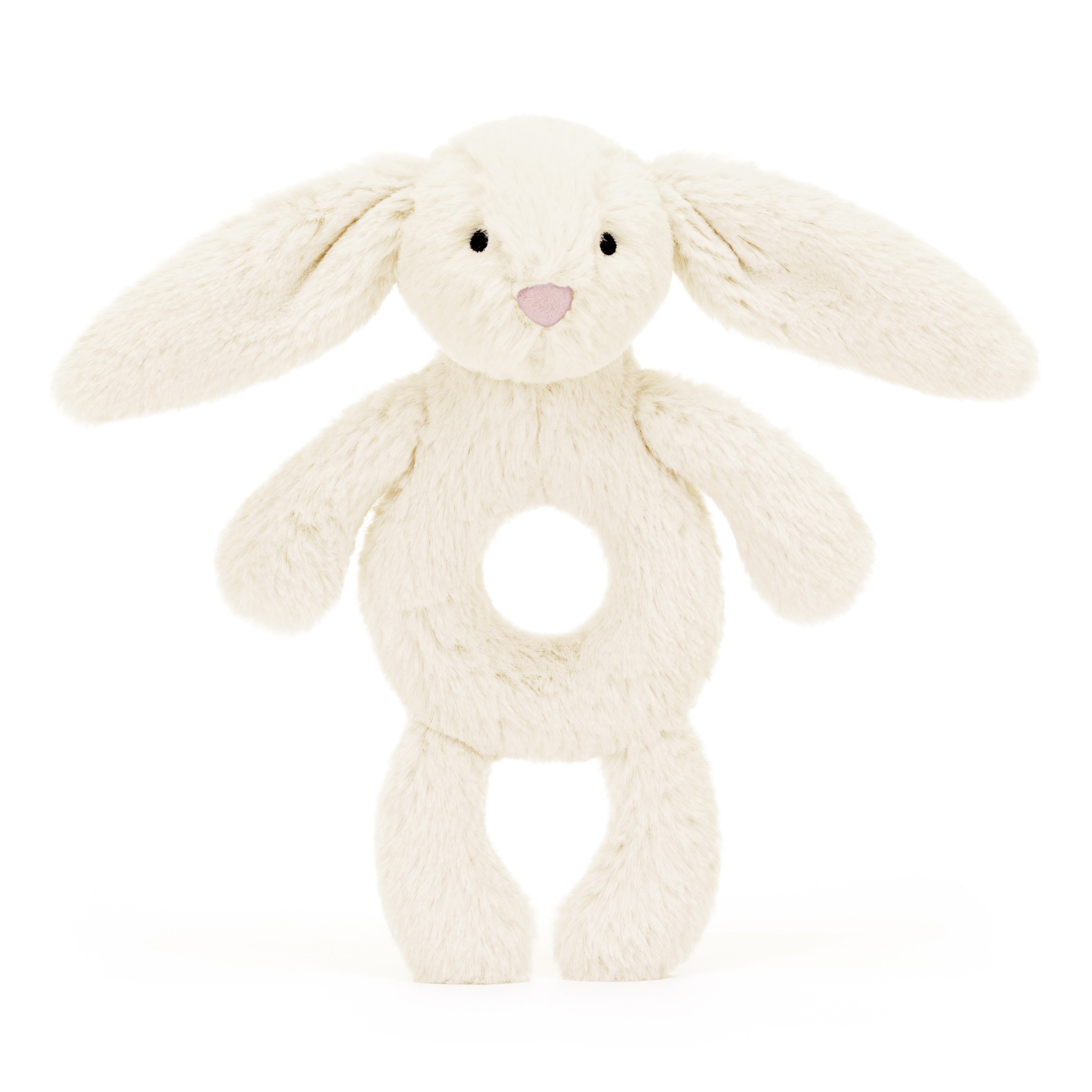 A treat for tiny hands, Bashful Bunny Ring Rattle can be held by its soft limbs, long lop ears or ring-shaped tummy.