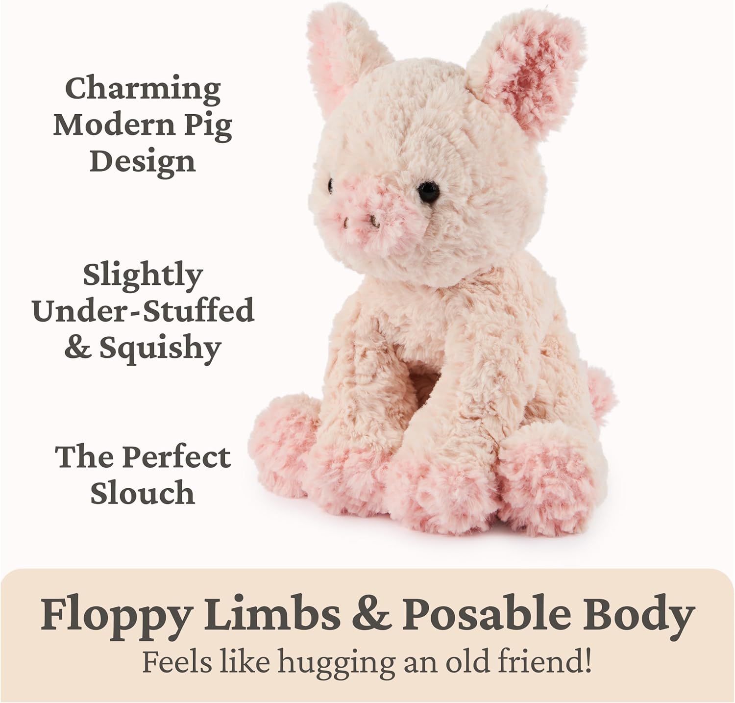 COZYS COLLECTION PLUSH PIG: This adorable pig sits 10” tall and features soft, floppy limbs with a slightly under-stuffed body that makes every squeeze feel even sweeter. It also has soft peachy-pink plush and a curly, playfully springy tail