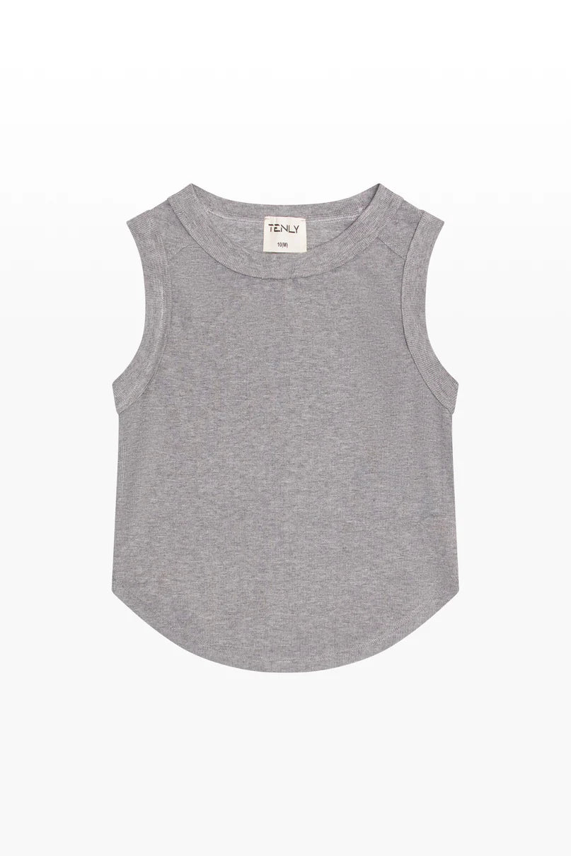 RIBBED EXPOSED SEAM TANK TOP - LT HT GREY