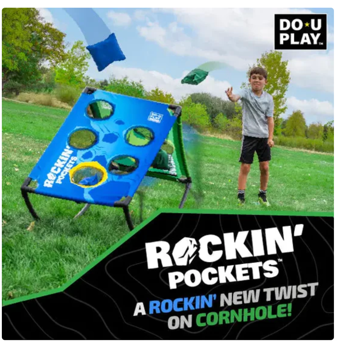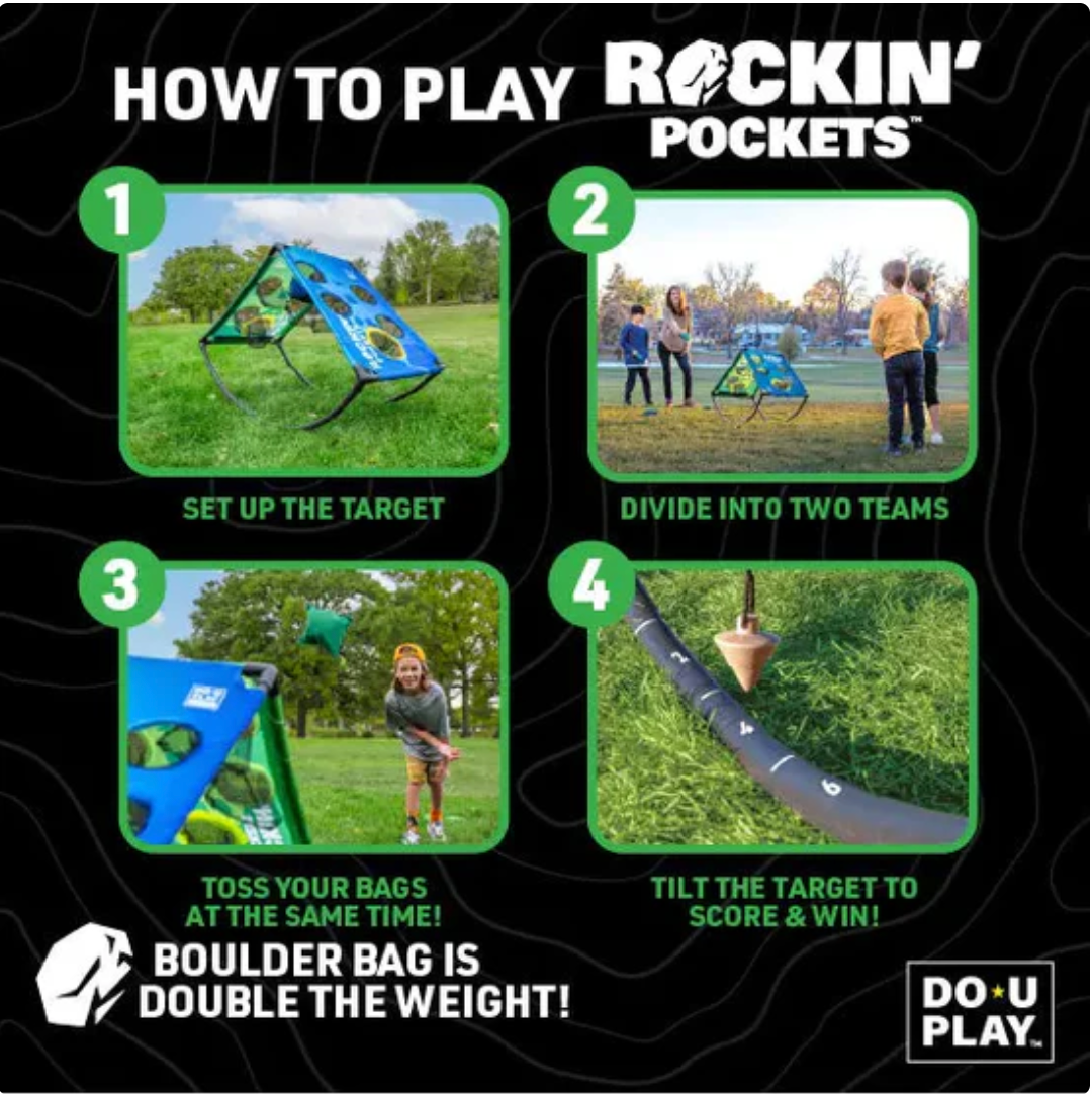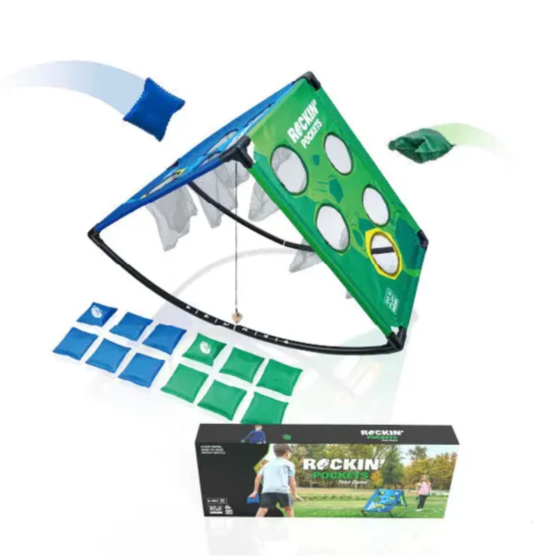 FAST-PACED ACTION: Inspired by the classic game of cornhole, Rockin’ Pockets introduces an exhilarating rocking mechanism to amp up the fun.