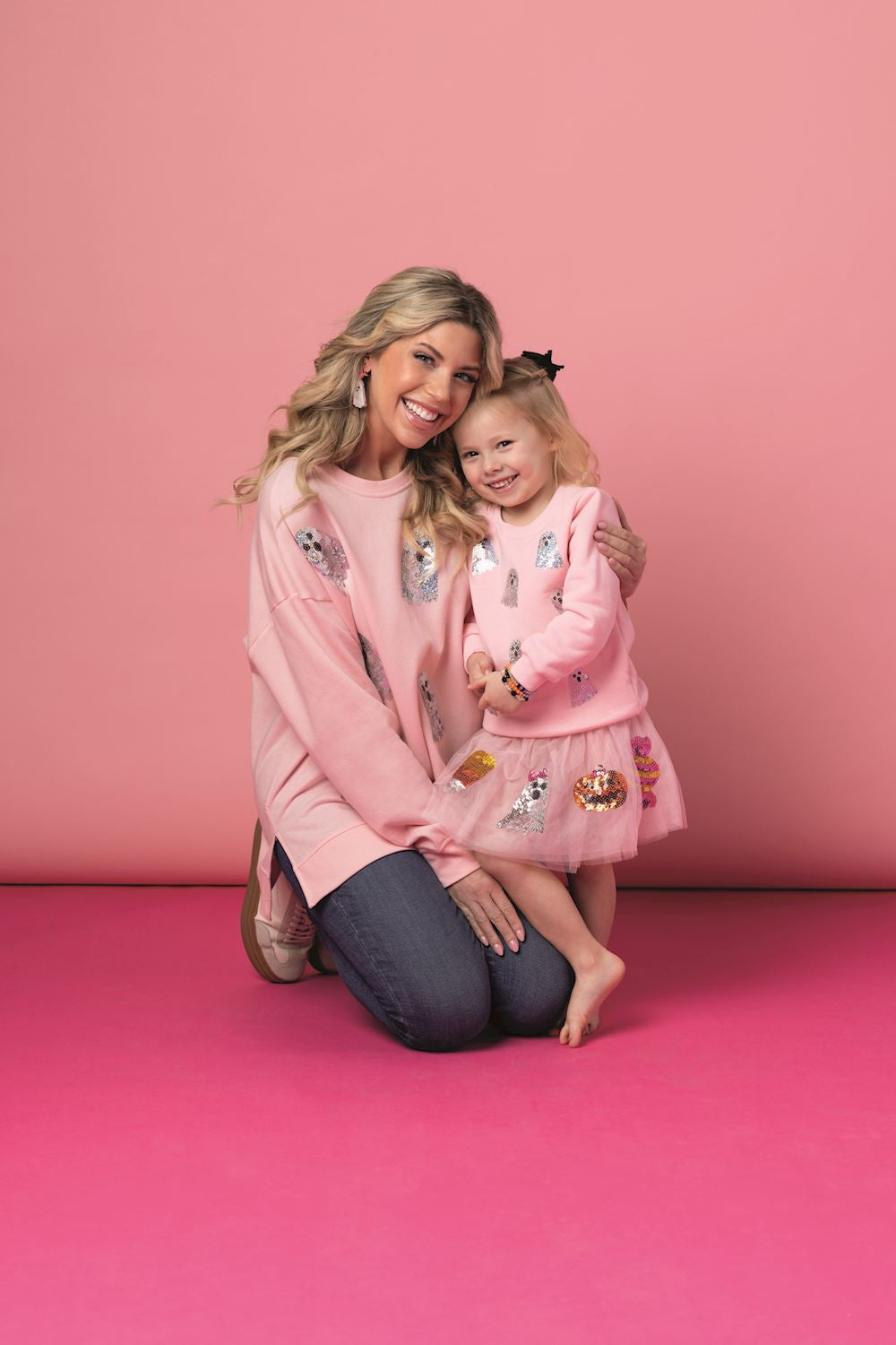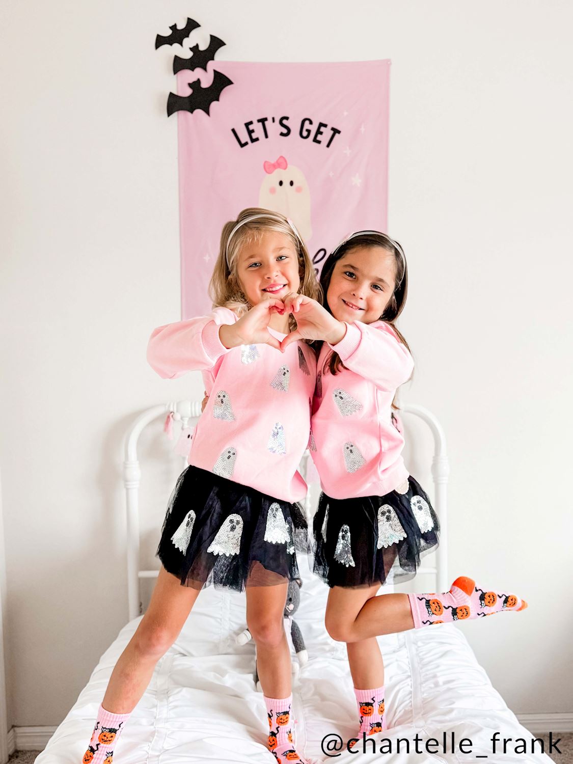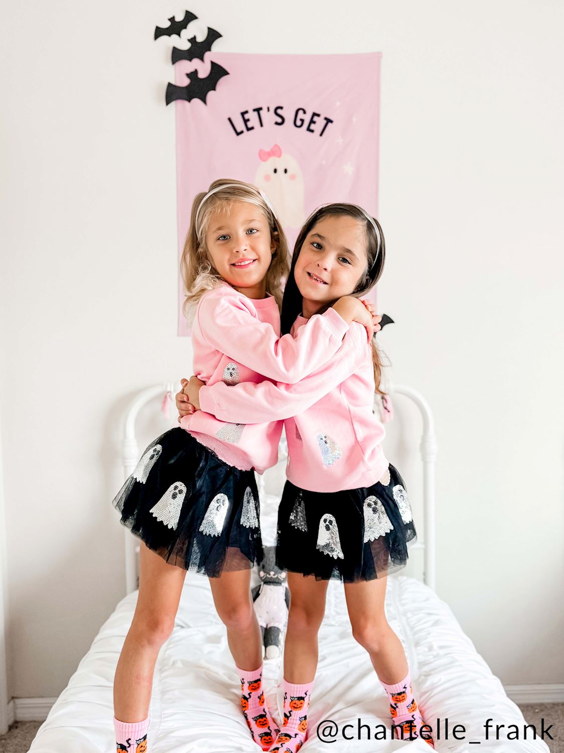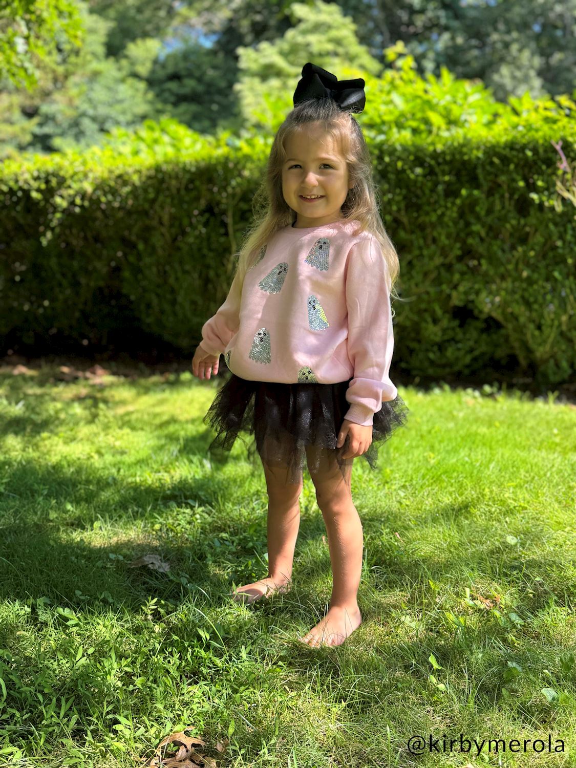 The Ghost Sparkle Toddler Sweatshirt is a delightful addition to your little one's wardrobe, combining comfort and playful style. Crafted from soft brushed French terry fabric, this sweatshirt ensures a cozy feel against the skin, perfect for all-day wear. The charming design features shimmering sequin ghosts that add a touch of sparkle and fun, making it a favorite for both toddlers and parents alike. The ribbed neckline, sleeve openings, and hem provide a snug fit, keeping your child warm and comfortable during cooler days. Available in a large size suitable for ages 4T-5T, this sweatshirt is made from a durable blend of 56% cotton and 44% polyester, ensuring it withstands the adventures of active toddlers while maintaining its shape and color. Ideal for casual outings, playdates, or festive occasions, this sweatshirt is sure to become a go-to piece in your child's collection.