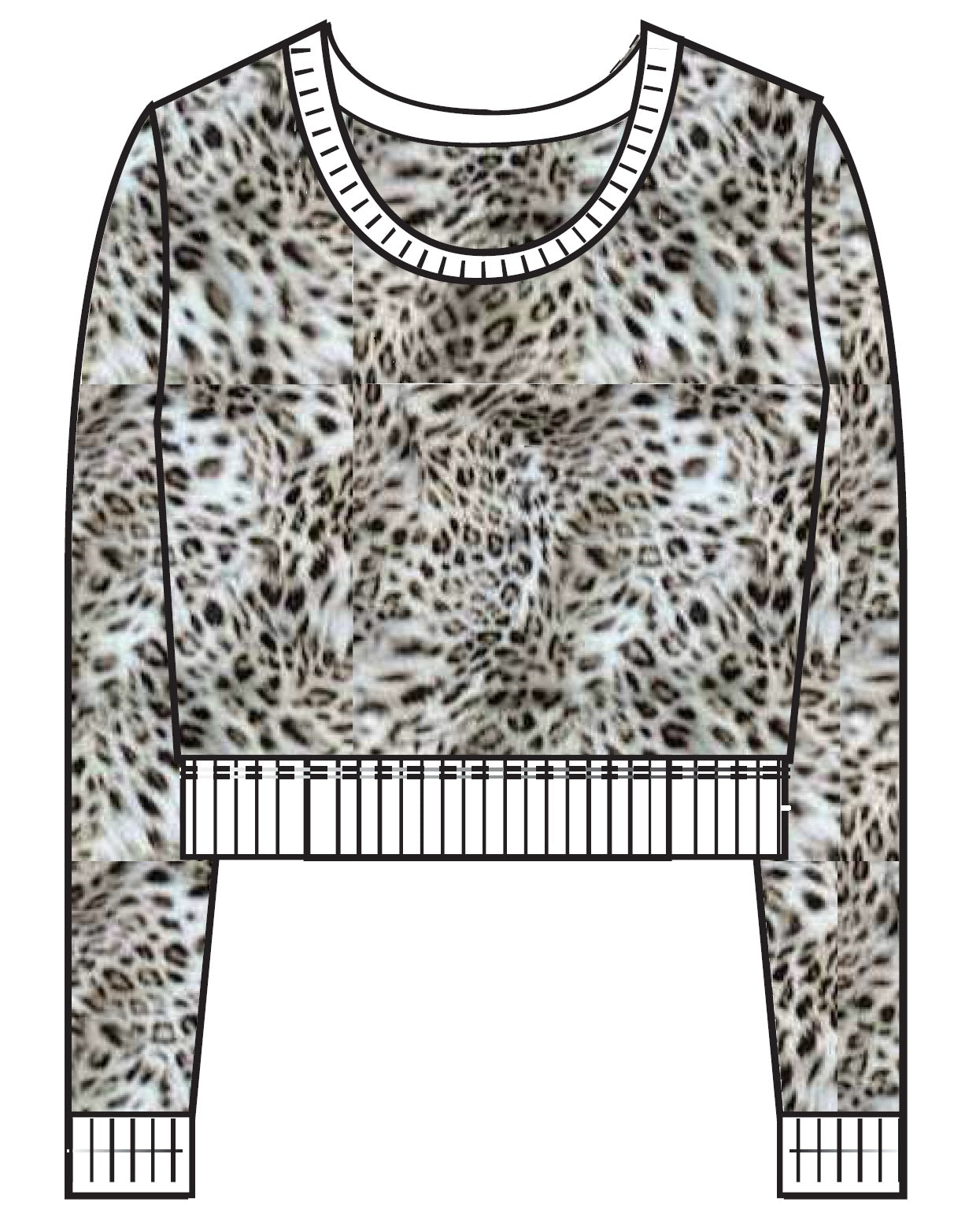 PRINTED SATIN LONG SLEEVE BANDED CREW NECK
