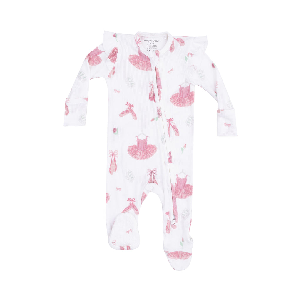 Our signature 2-Way Ruffle Sleeve Zipper Footie makes changing your baby a breeze! (Or as we like to say, a Zip!) Crafted from luxuriously soft ribbed modal fabric and adorned with Angel Dear's signature prints, this footie combines comfort, charm, and convenience to keep your little one looking adorable and feeling cozy.