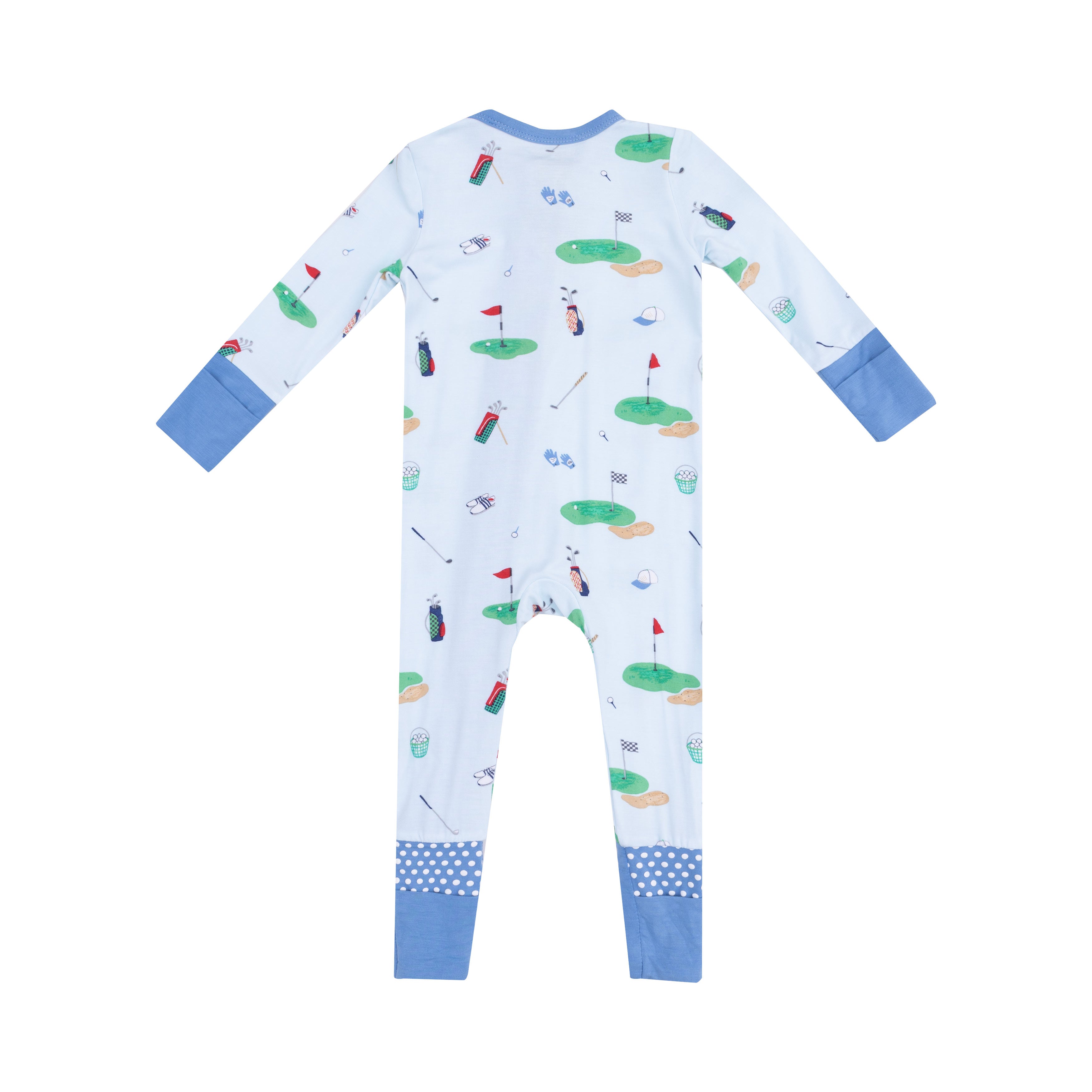 2 Way Zipper Romper - Golf Things Blue - 0-3M