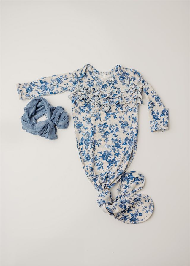 Designed with comfort in mind, Blue Bell Bliss gown is so soft you will want all designs! They are created with custom printed viscose from bamboo fabric made to be soft, comfortable, and stretchy for your little one while the added details make a unique stylish outfit! The tie bottom allows for easy diaper change and the pull down shoulder tabs makes it effortless to dress day and night. Fold-over no-scratch cuffs; while keeping your baby snug, stylish, and comfy 24/7! Purchase with the coordinating Mommy Robe and swaddle blanket to match your new little arrival.