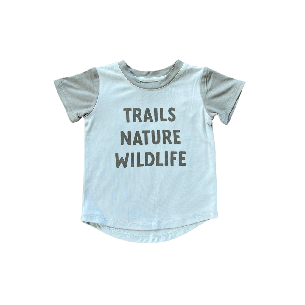 🌿 Let's Go Outside 🌿 Adventure awaits with our exciting new kids' clothing collection! Designed for young explorers and outdoor enthusiasts, "Let's Go Outside" brings you a range of durable, comfortable, and stylish outfits perfect for every adventure. From playful hikes in the woods to imaginative explorations in the backyard, our collection is crafted to inspire and withstand every outdoor escapade. Explore our Colorblock Tee color options for Boys. Featuring our Bug Tee with accent colors in Toffee and Trails Nature Wildlife with accent colors in Seagrass. Features: Relaxed Fit, Color-Blocked Short Sleeves Fabric: Bamboo Jersey Colors & Designs: Custom to Babysprouts Clothing Company Suggested Care for this Fabric: Wash with cold water with like fabrics. Mild Detergent. Air dry OR Low heat.
