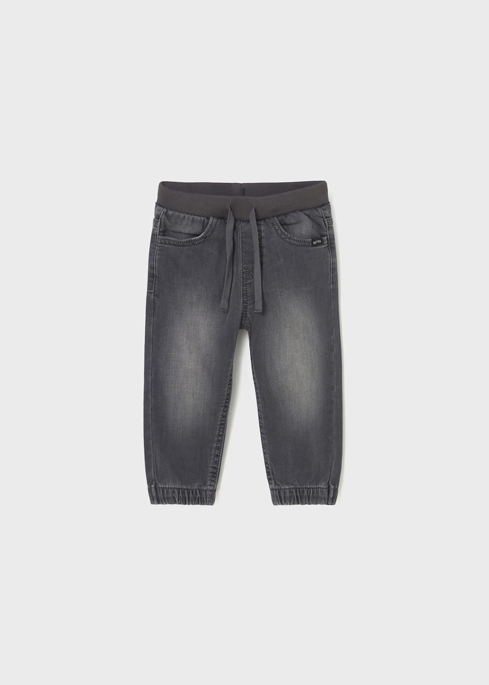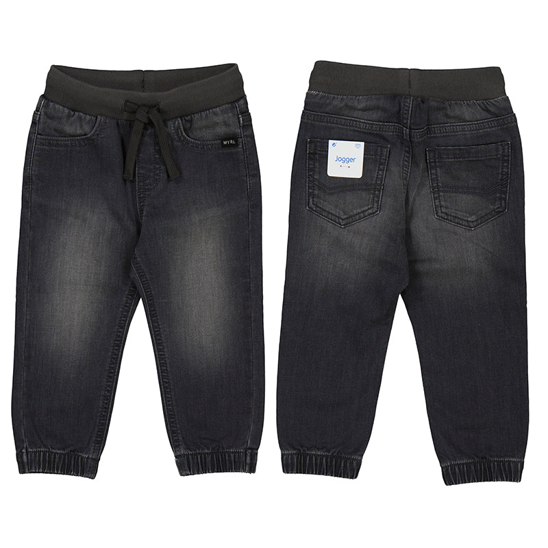 Joggers for baby, baggy at the top of the joggers but narrower towards the ankle. They are perfect for sporty looks, reflecting the influence that sport has on everyday fashion. Elasticated waistband with adjustable drawstring. Comfortable denim fabric, perfect for everyday outfits.