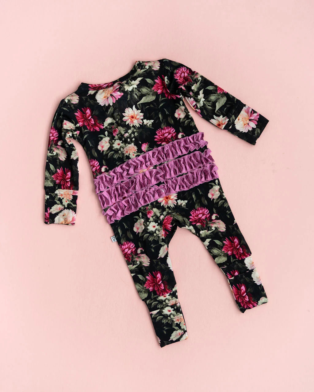 Laree + Co.'s luxuriously soft ruffle bamboo one-piece convertible footie with three-way zippers is a game changer. They make diaper changes a breeze and are also perfect for our little warriors with tubes and wires!