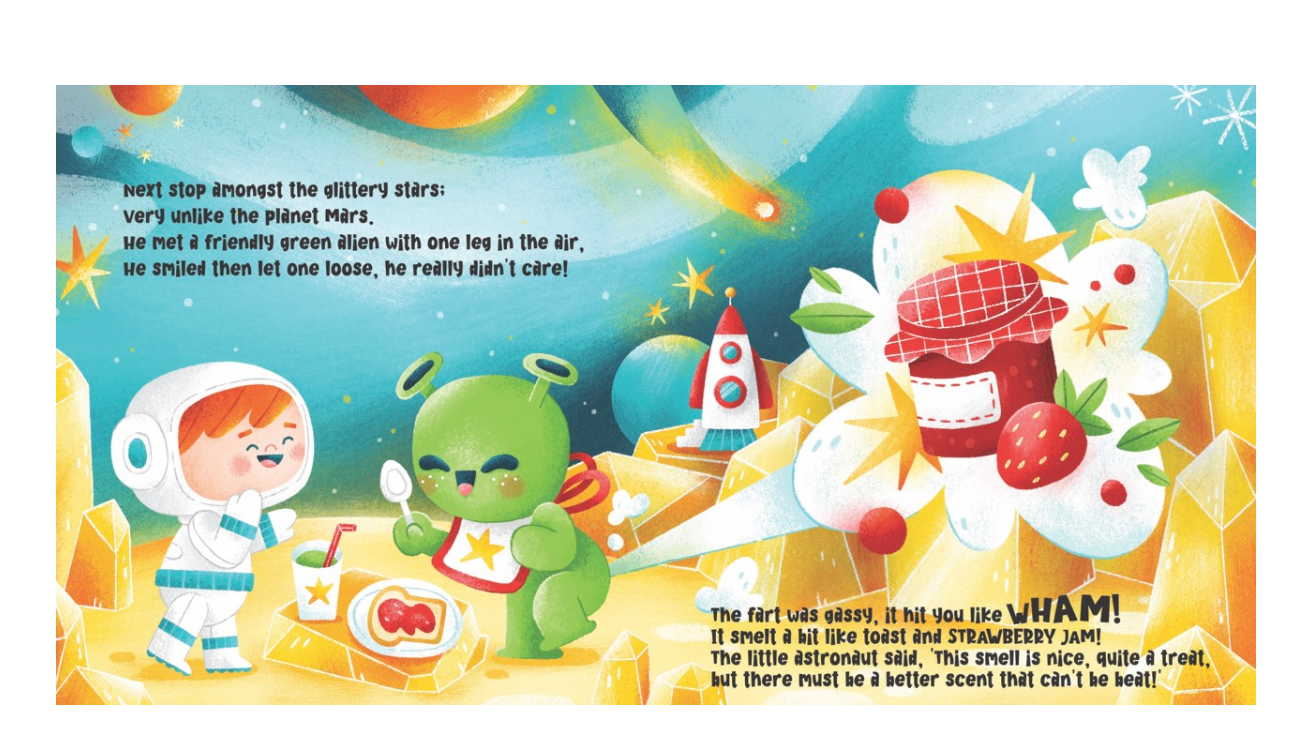 A new addition to our scratch n sniff book range! Blast off with our little brave astronaut as he’s off on a galactic adventure to find the BEST smell in space! Meet some seriously smelly aliens along the way. Lift the flaps to discover lots of cosmic whiffs!