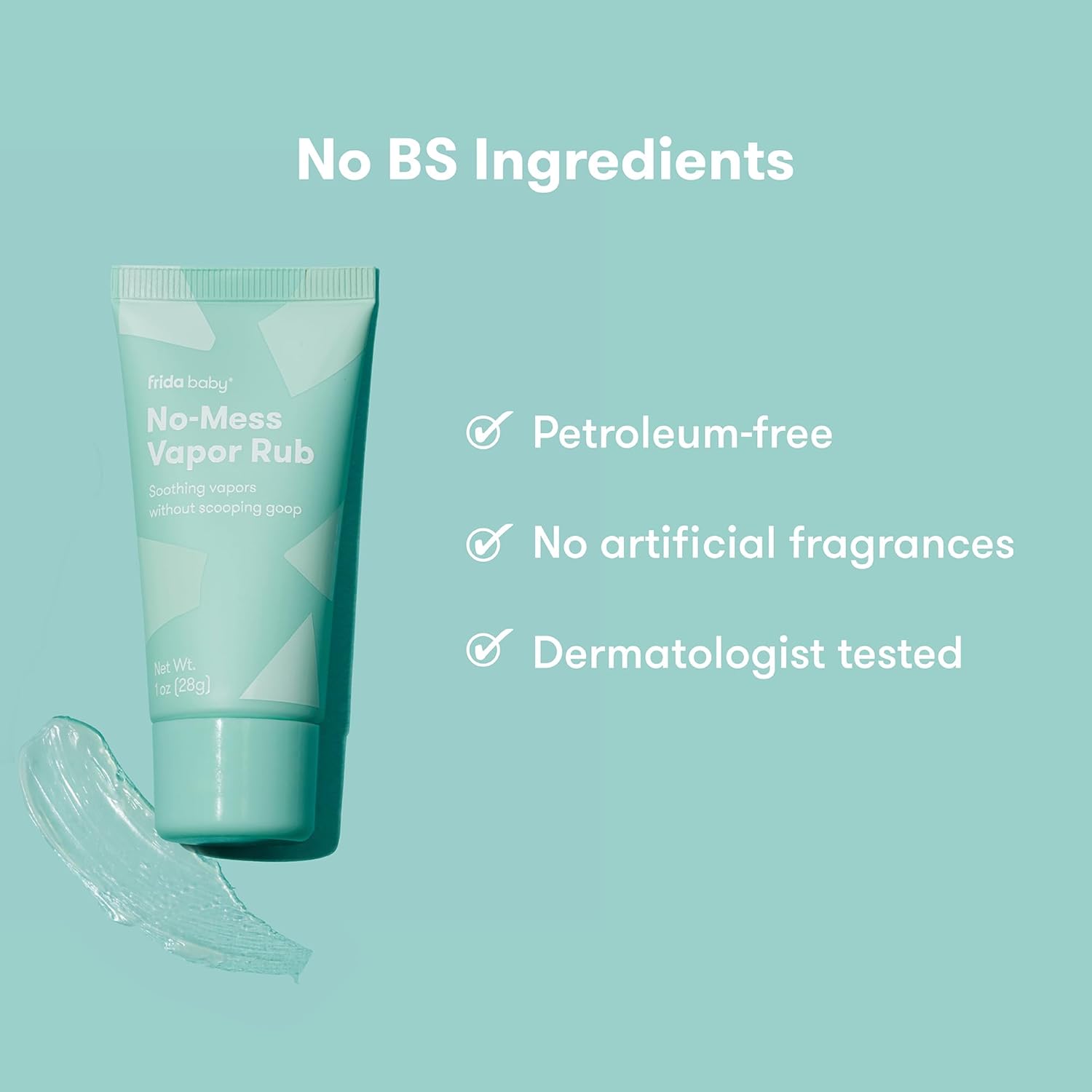 - PETROLEUM-FREE: The No-Mess baby vapor rub is lightweight, with a water-based formula that goes on light without any greasy residue.