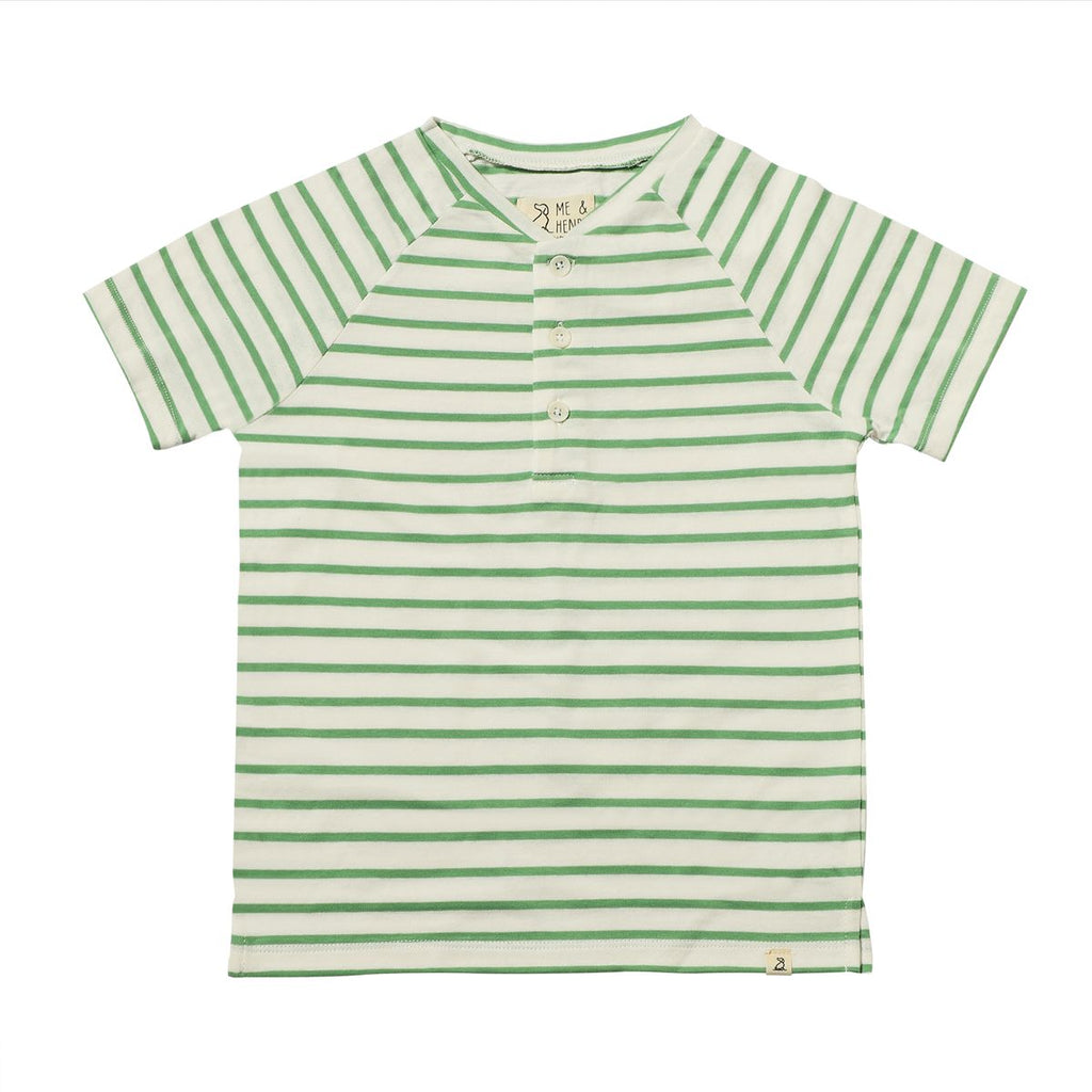 FRIGAT Raglan Henley - Green/White Stripe HB1457e
