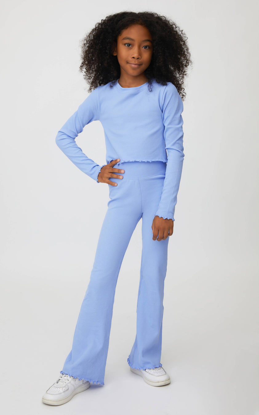 Girls Rib Seamless Long Sleeve and Flare Set - Pre-packed - Lettuce edge details - Rib, Seamless fabric - - Machine Wash Cold - Lay flat to dry, no heat