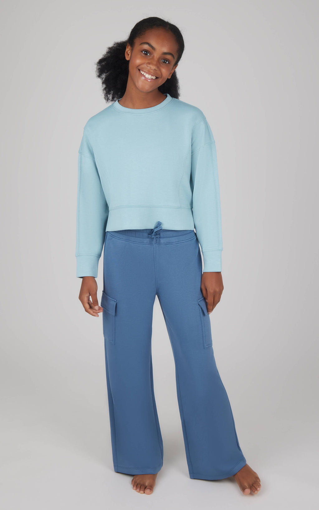Girls Scuba Pullover and Wide Leg Cargo Pant - Set: FORGET-ME-NOT/BLUE HORIZON