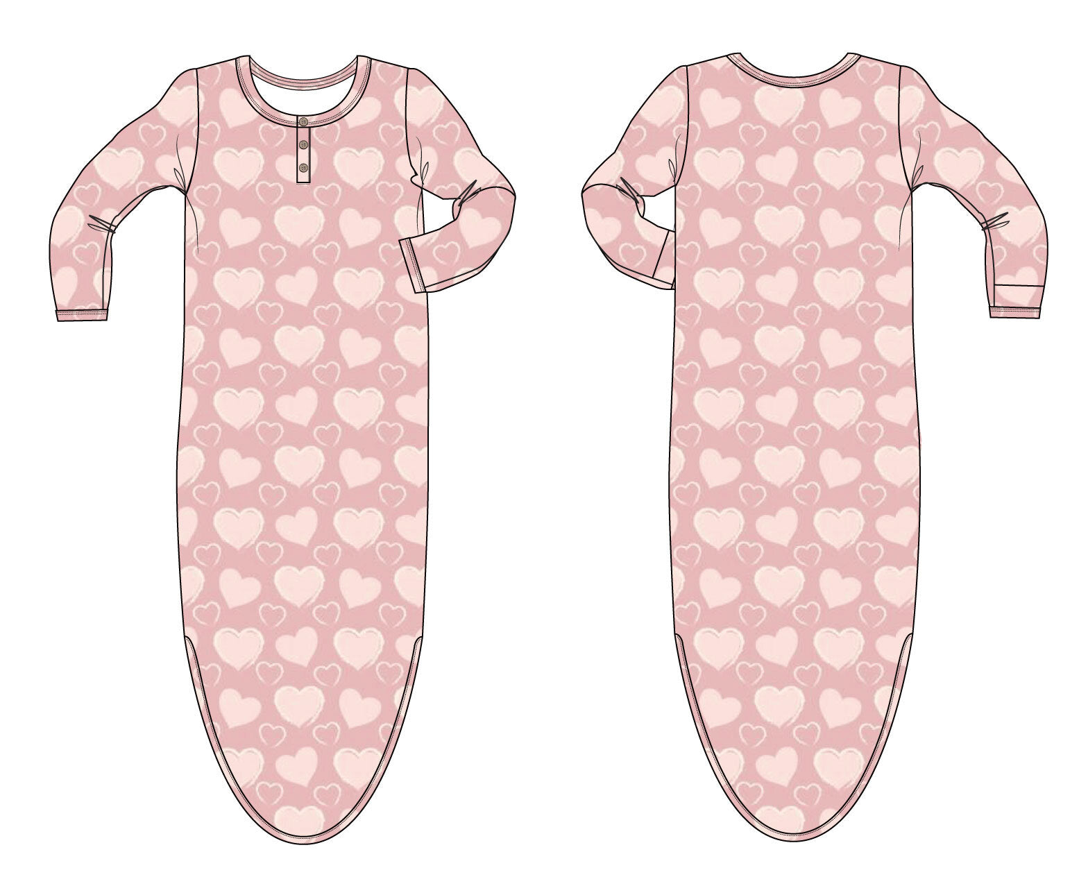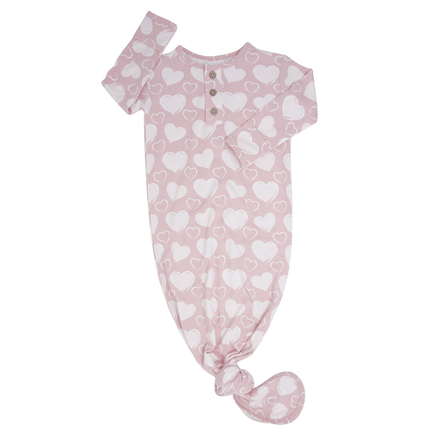 Let's Tie the Knot Our knotted gown is perfect for that special homecoming outfit. A close fit design for comfort and security. Finished with a deep front placket and knot closure for super easy diaper changes! Front snap placket Foldover cuffs Knotted closure at the bottom Tagless size label for total comfort Safe for sensitive skin
