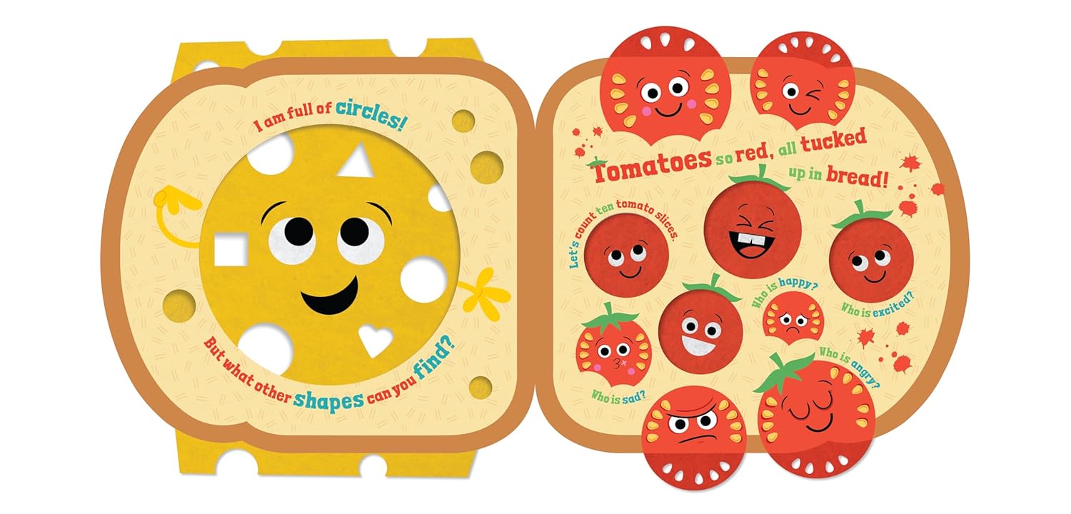 What would you like to eat today? It’s your sandwich, so come and play! Have fun turning the pages to layer up each funny ingredient in this super sandwich-style play book. With a foam cover, soft felt areas, and shaped pages, this interactive book is perfect for bringing play food to the bookshelf!