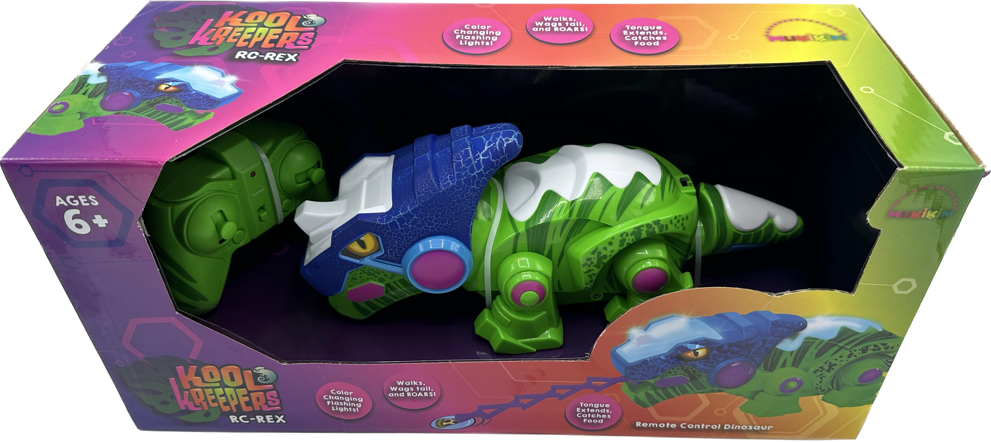- THE ULTIMATE RC DINOSAUR TOY: REX is a color-changing dinosaur toy that brings the prehistoric world to life with its vibrant lights, captivating sounds, walking and wagging its tail. With the ability to change LED light colors and extend its tongue, it adds extra layers of excitement to playtime, creating an immersive experience for children.