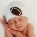 MADE IN THE USA! PLEASE EMAIL US TO TELL US WHICH PACKAGING YOU WOULD LIKE. STANDING PACKAGING OR GIFT BOXES. DEFAULT WILL BE OUR NEW STANDING PACKAGING! This Soft Chenille Football Newborn Boy Hospital Hat from ilybean is perfect for welcoming the newest football fan in your family. This football patch is a soft and cuddly chenille textured patch. It is a great hat to pack in your hospital bag for the first photo shoot of the newborn baby boy. Handmade in the USA with a 2-ply fabric, it is also 2x warmer and 2x more cozy than the usual hats that are provided by hospitals. Colors available: Oatmeal, Sage Green, Blue and White