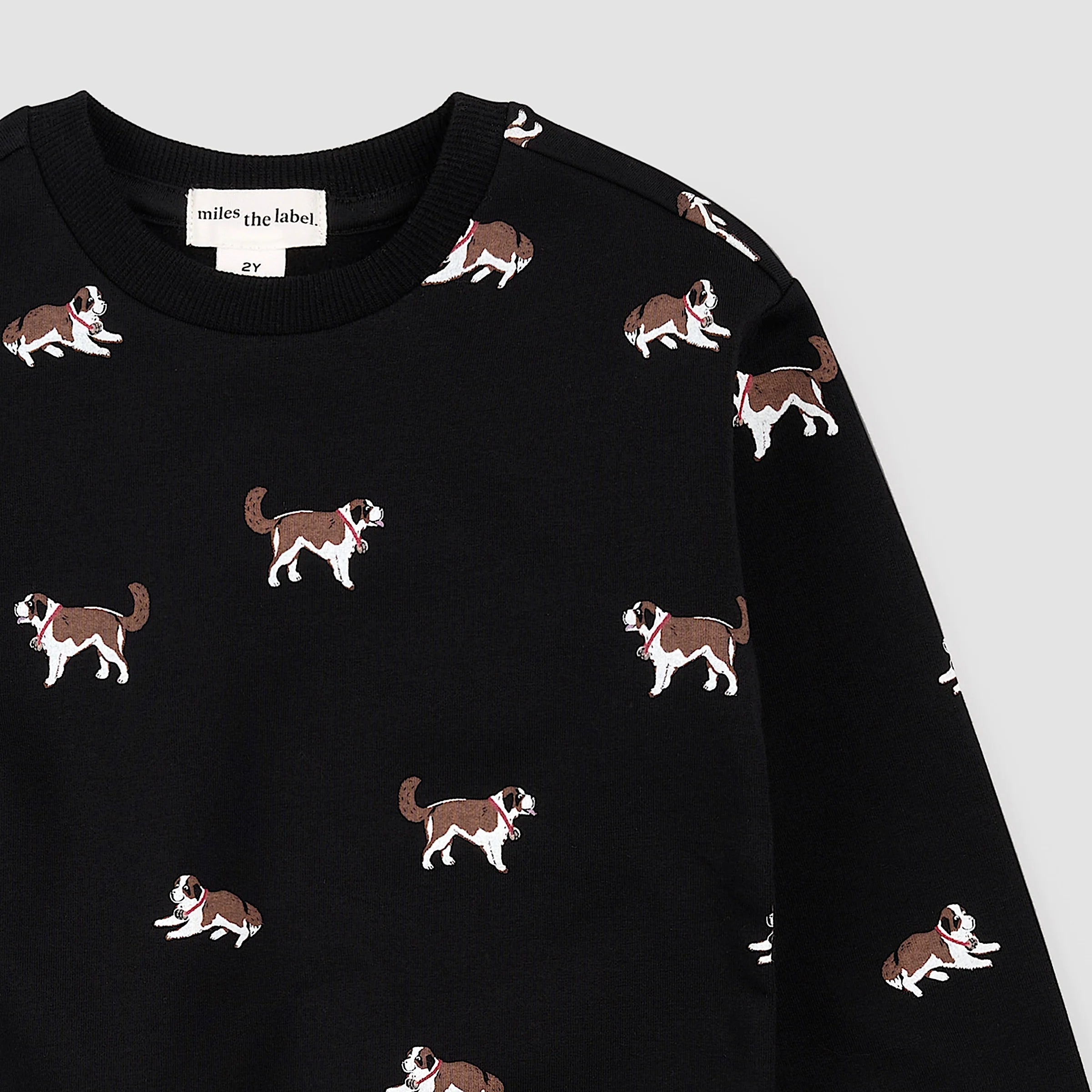 A cozy everyday sweatshirt featuring a charming St. Bernard print. Made from soft, fleece fabric, this piece has a rounded neckline and ribbed cuffs for all-day comfort. Match it with joggers from our Miles Basics range before heading out to walk the dog.
