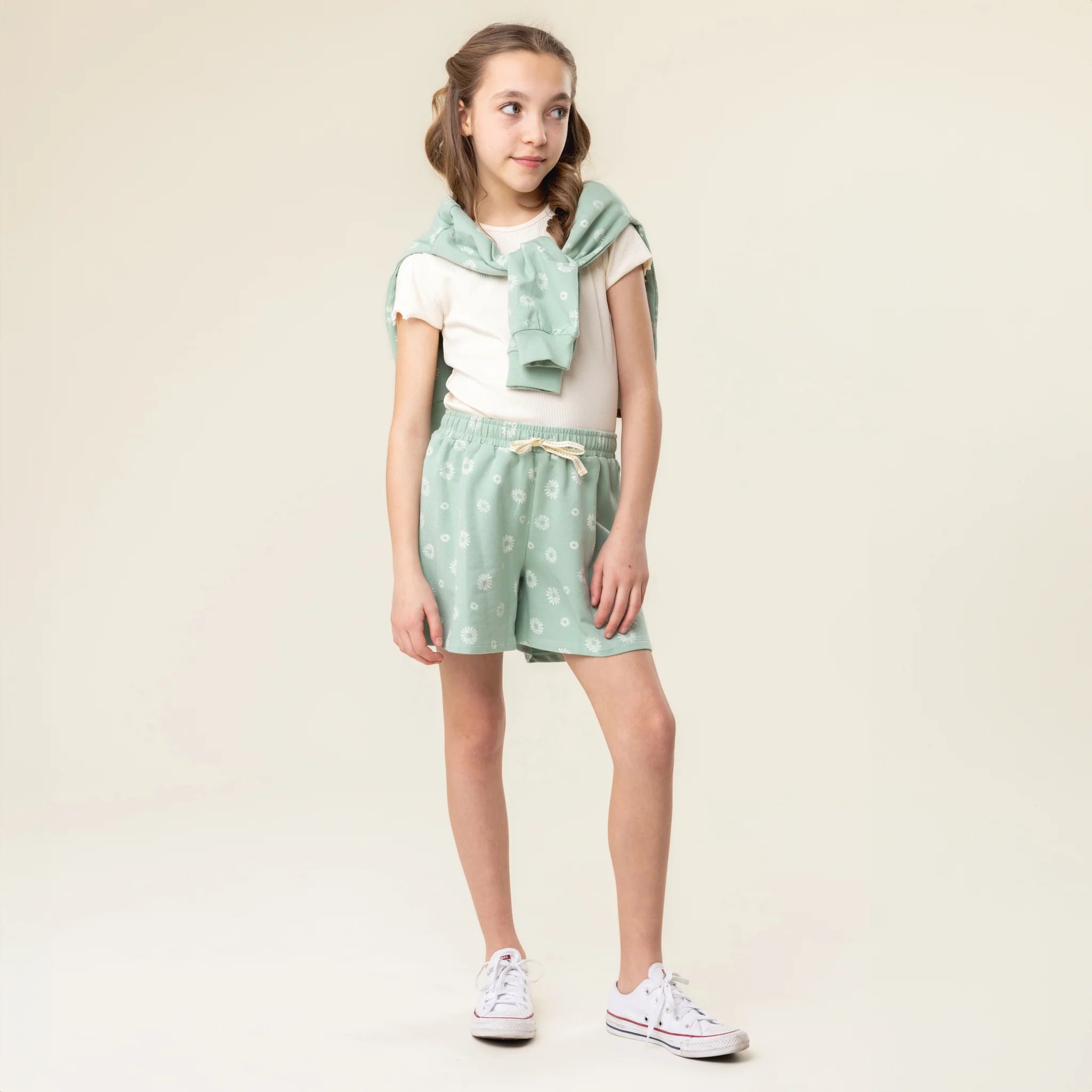 • Printed French cotton shorts• Elastic waistband with drawstring• Multiple pockets